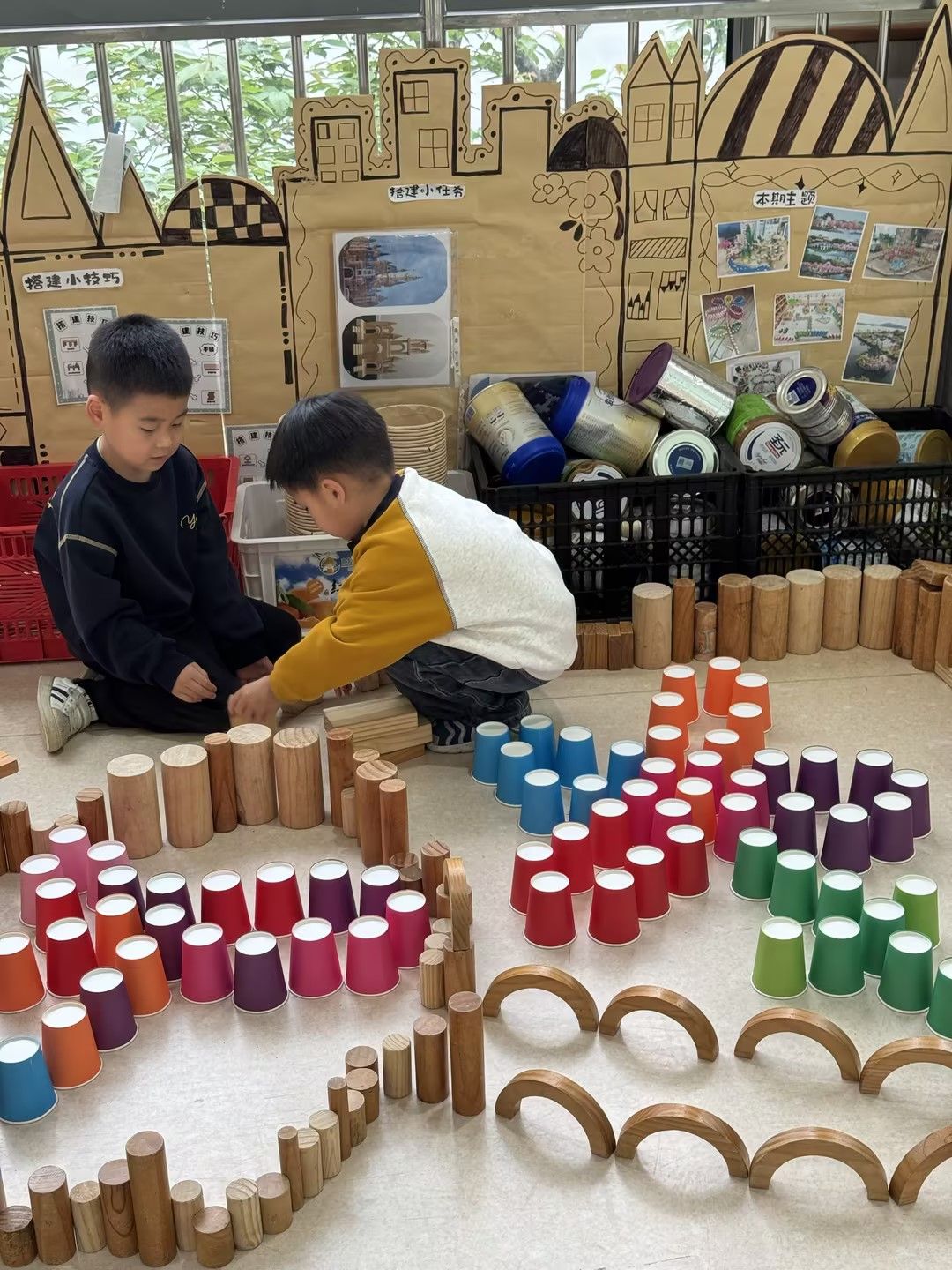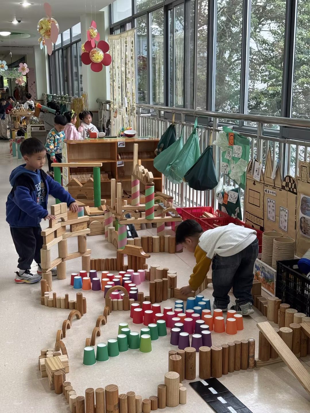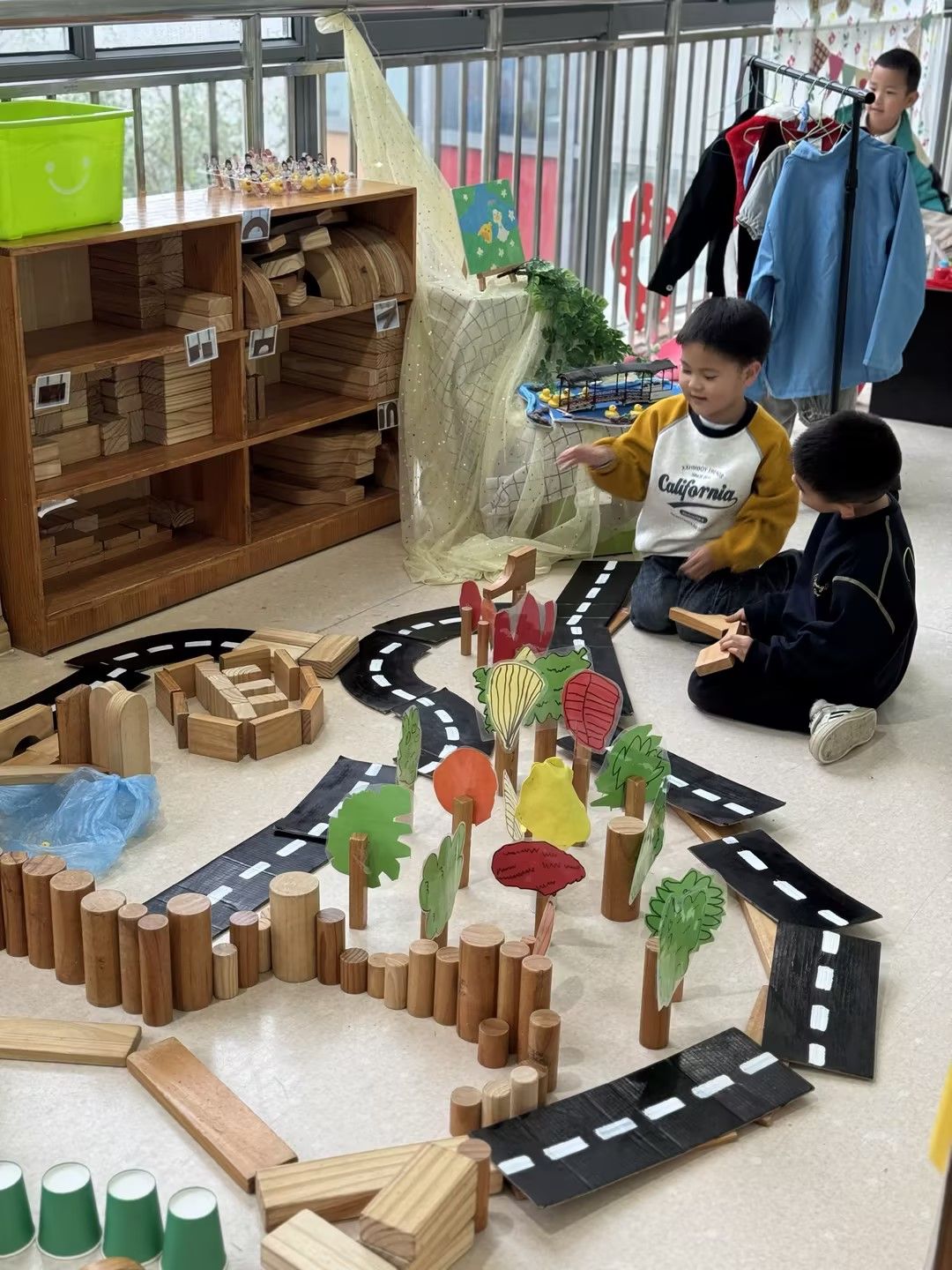 建构区里,中班宝贝尽情释放想象力。垒高、围合、拼接、规划,用原木积木、创意材料搭建专属小世界。在动手搭建中感知空间结构,在结伴游戏里学会合作分享。一砖一瓦皆是童真,一搭一建满是欢喜,在探索创作里快乐成长。