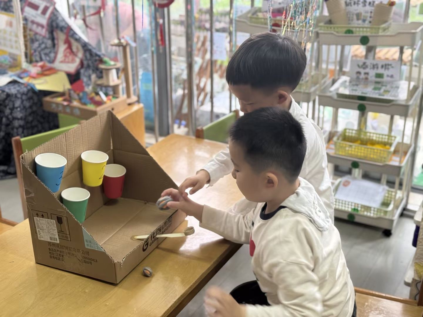 快乐纸杯游戏,孩子们感受创意的乐趣。