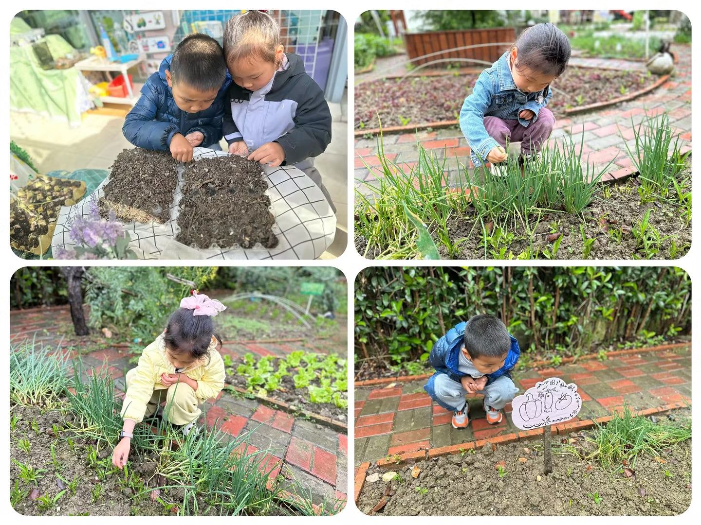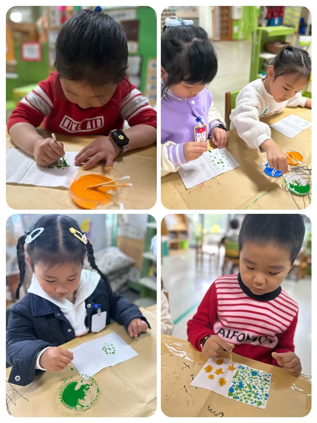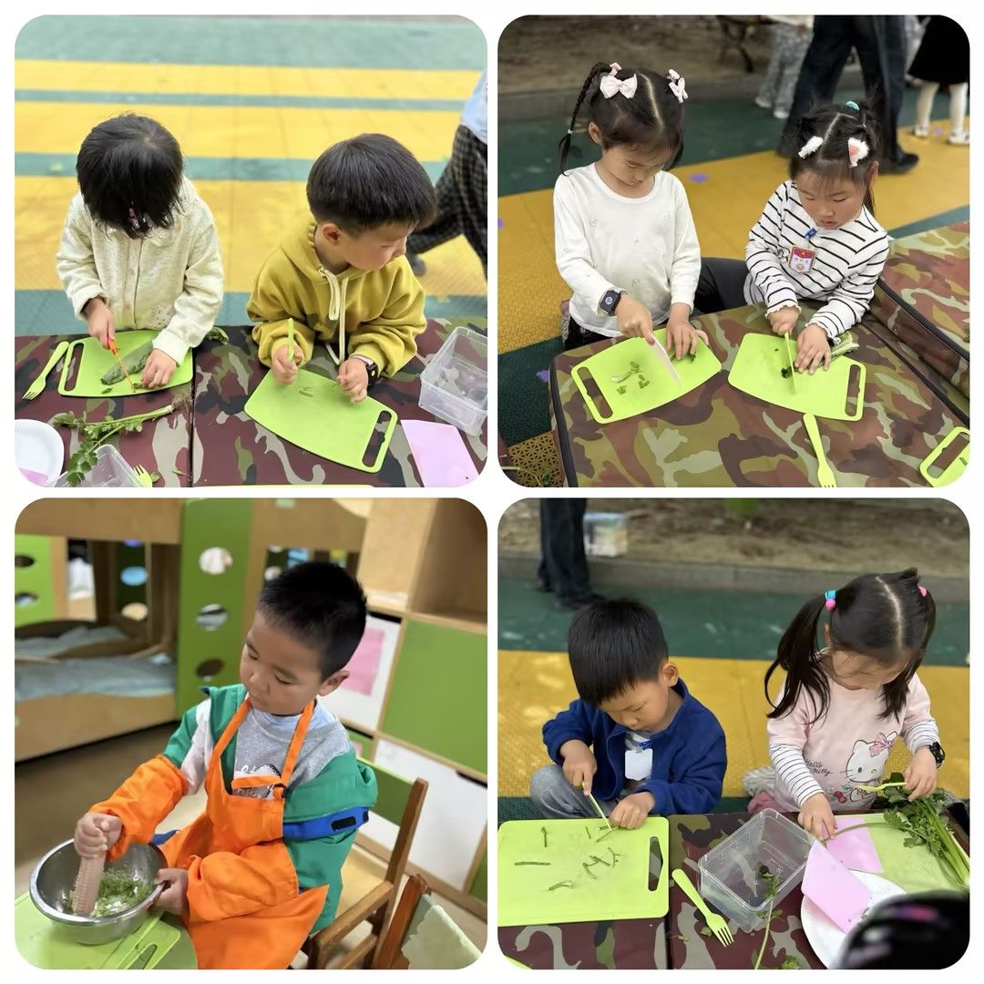 春日里,孩子们在种植园里播撒希望,俯身照料葱苗,感受泥土的芬芳与生命的萌发。课堂上,他们用拓印画将春日的绿意晕染在纸上,把春天的色彩藏进作品里。户外厨房里,孩子们亲手处理刚采摘的鲜蔬,将春日的新鲜滋味酿成美味。在自然与艺术的交融中,孩子们触摸春天、描绘春天、品味春天,把整个春天都装进了成长的记忆里。