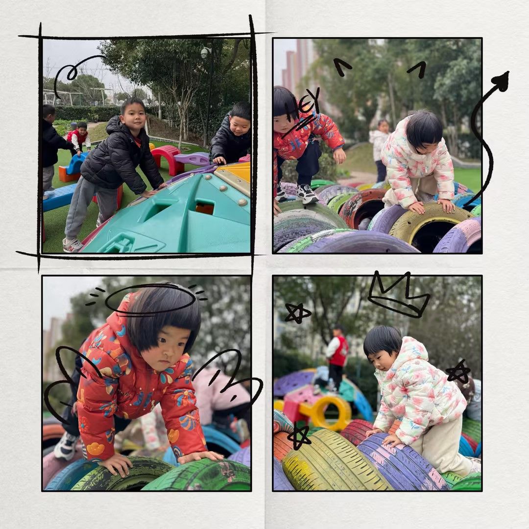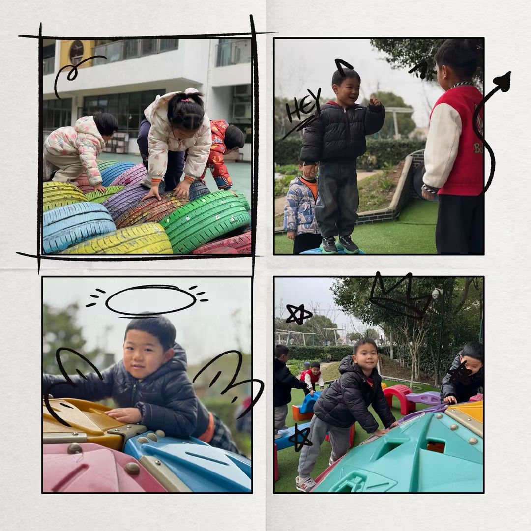 幼儿园的玩具真多呀,我们在玩大龙球,还能玩出各种玩法呢!