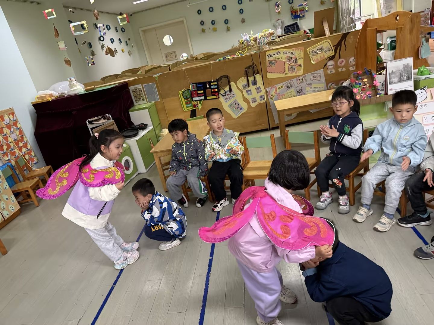 我们欣赏了音乐《蝴蝶找花》,跟着轻快的节奏我们好似眼前就是一片花海。
