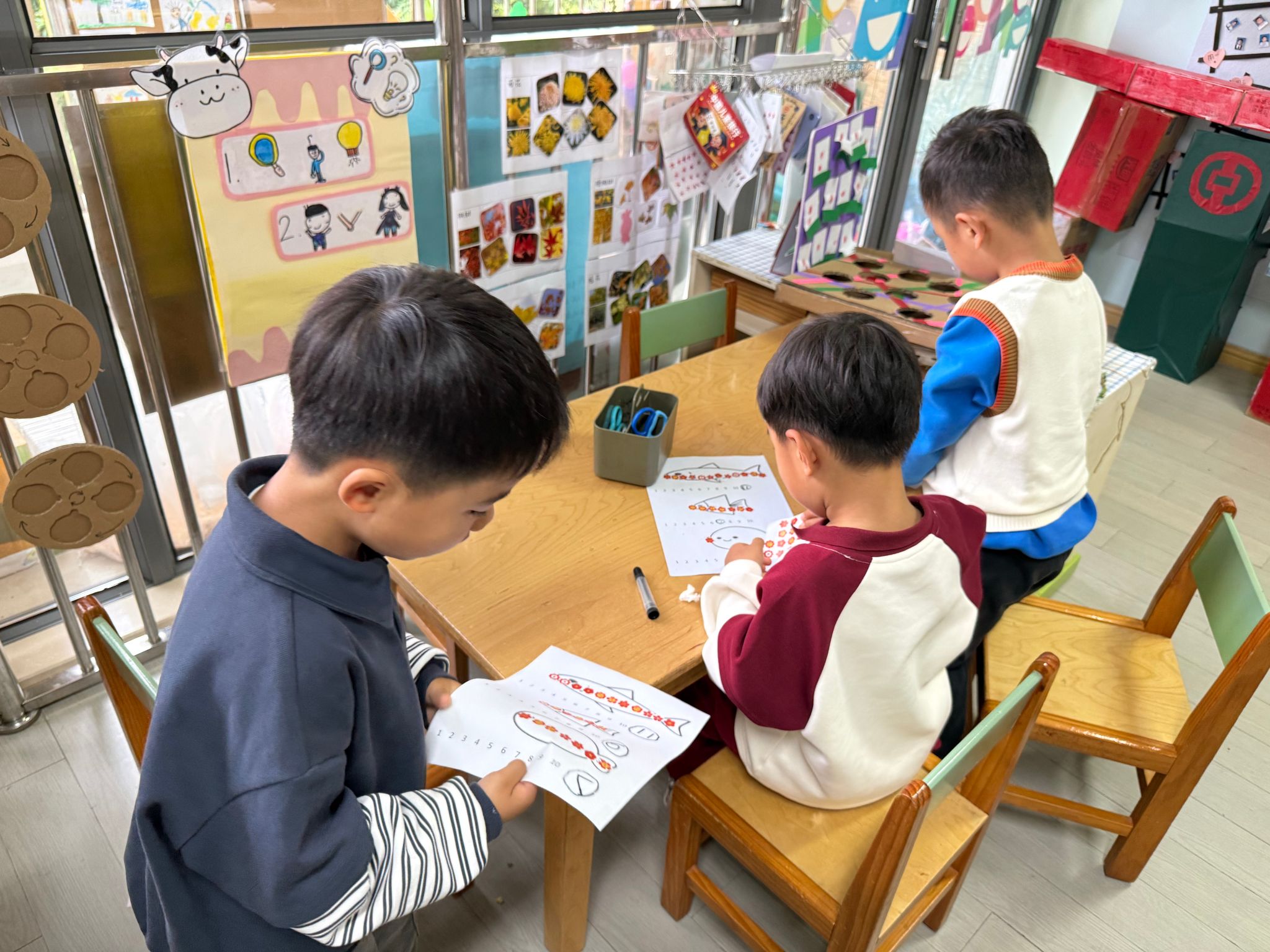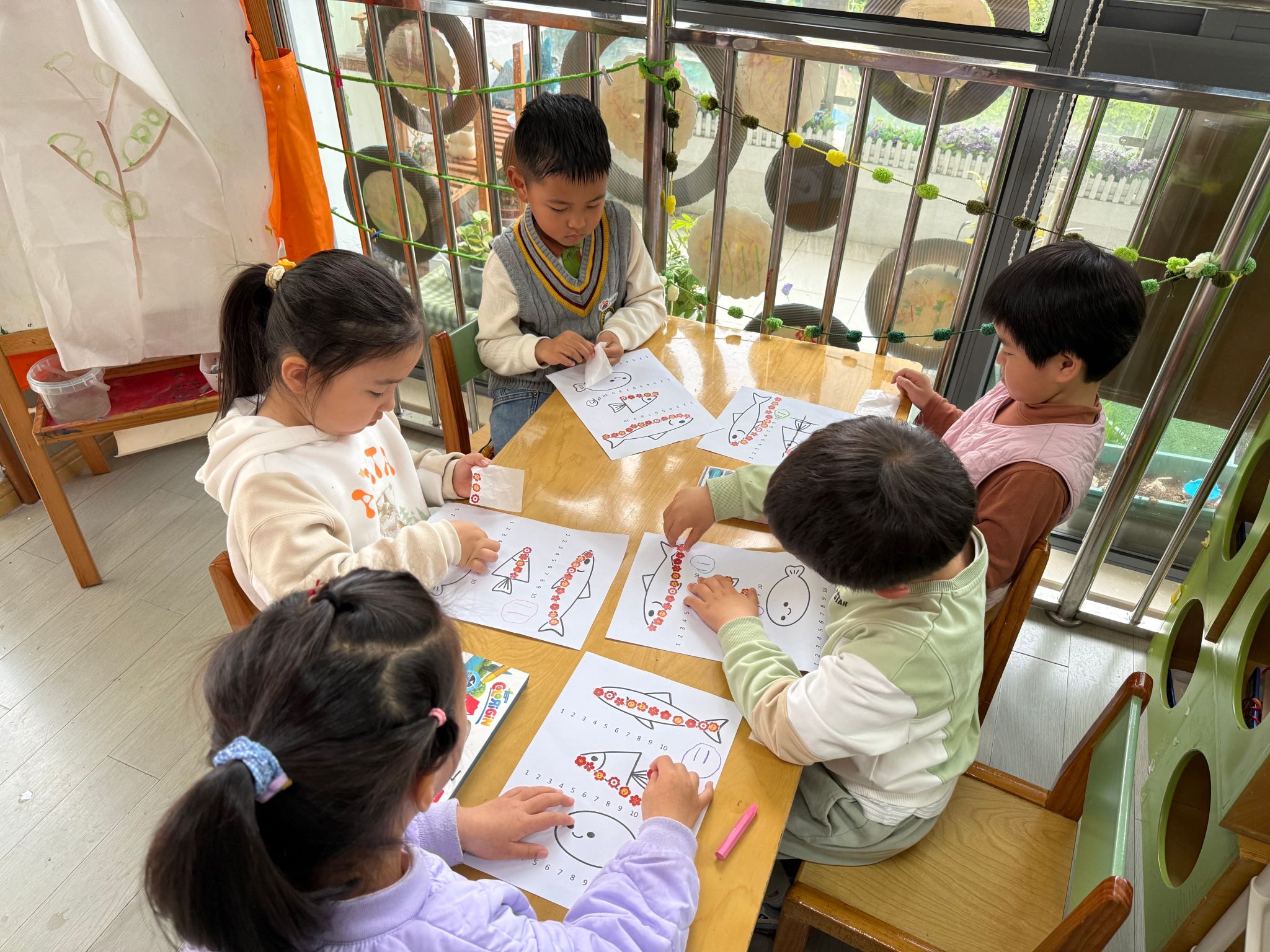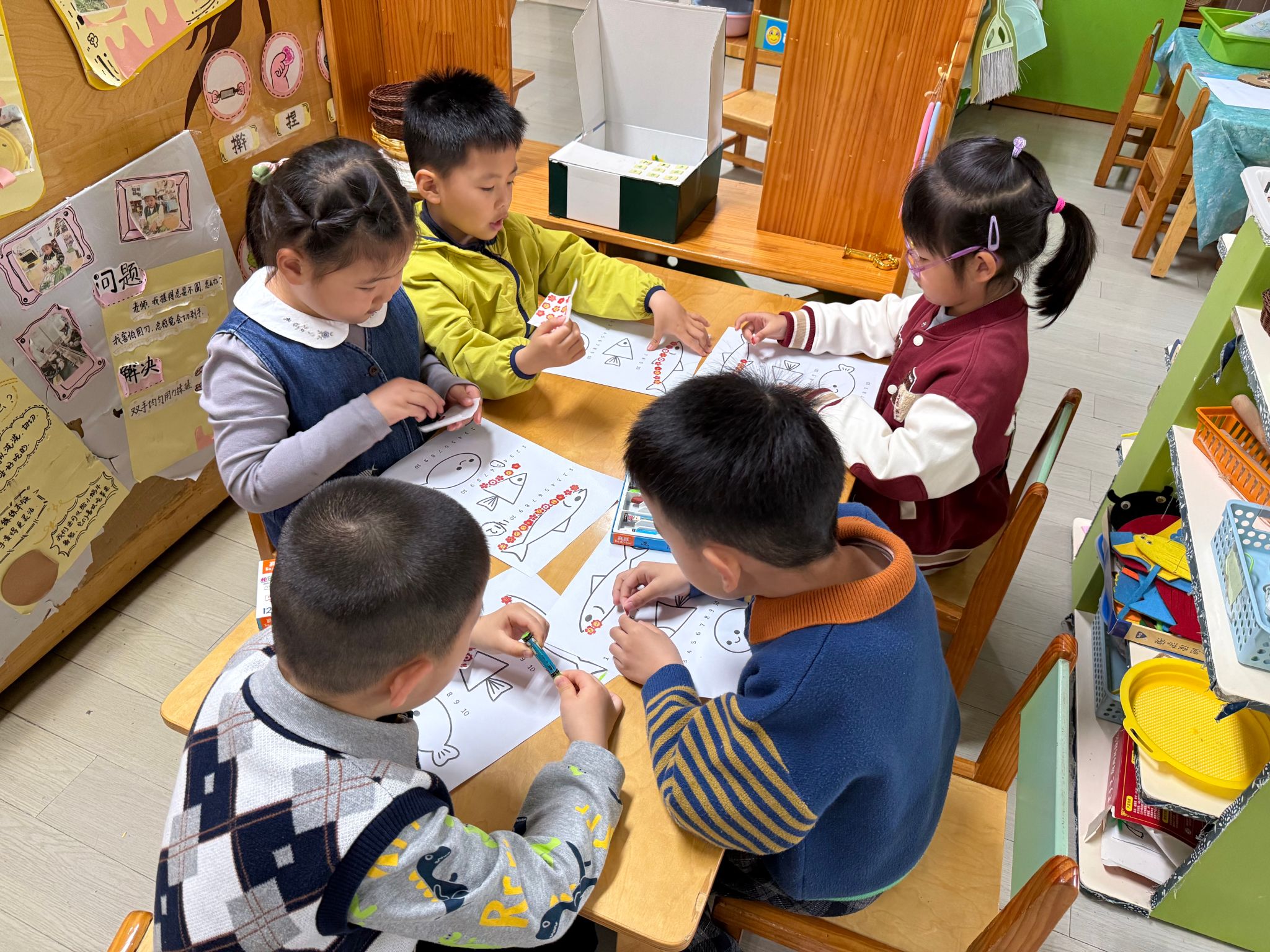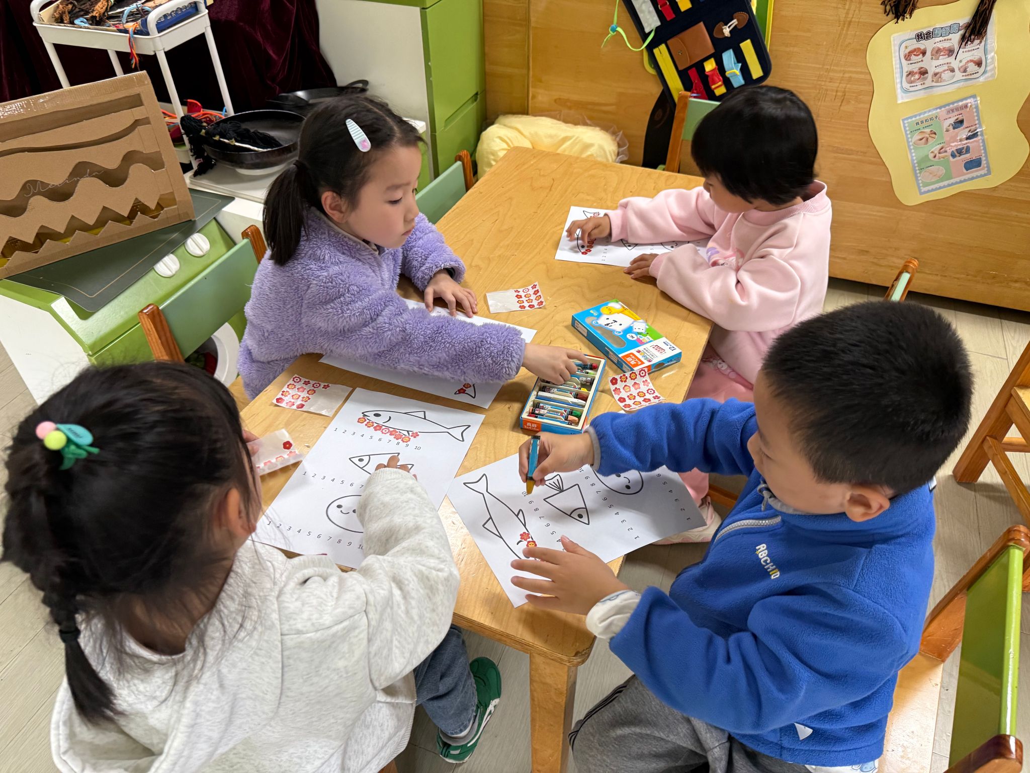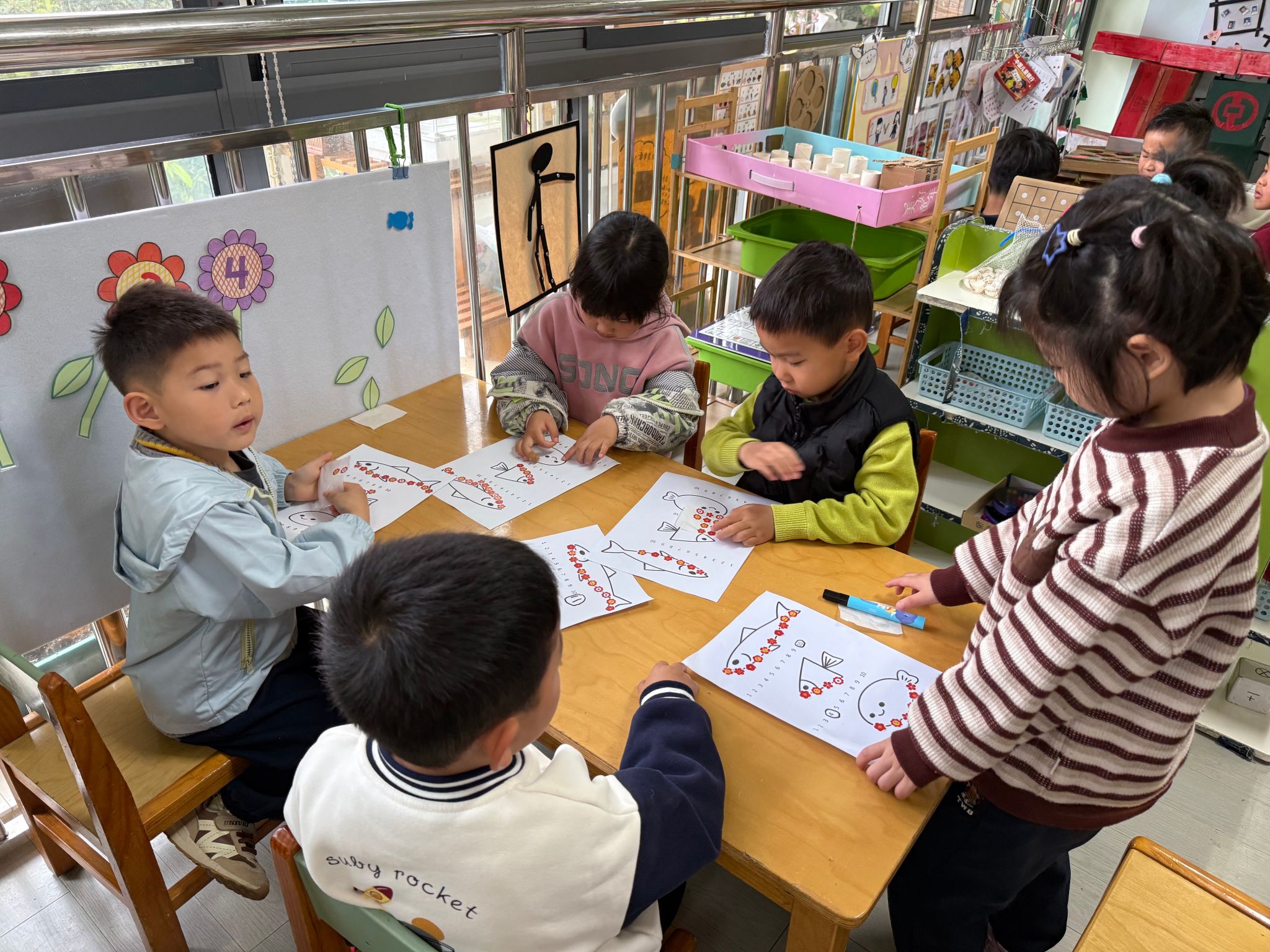 数一数谁用地贴纸最多,就是最长的小鱼。