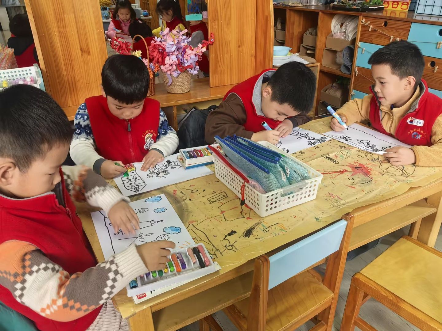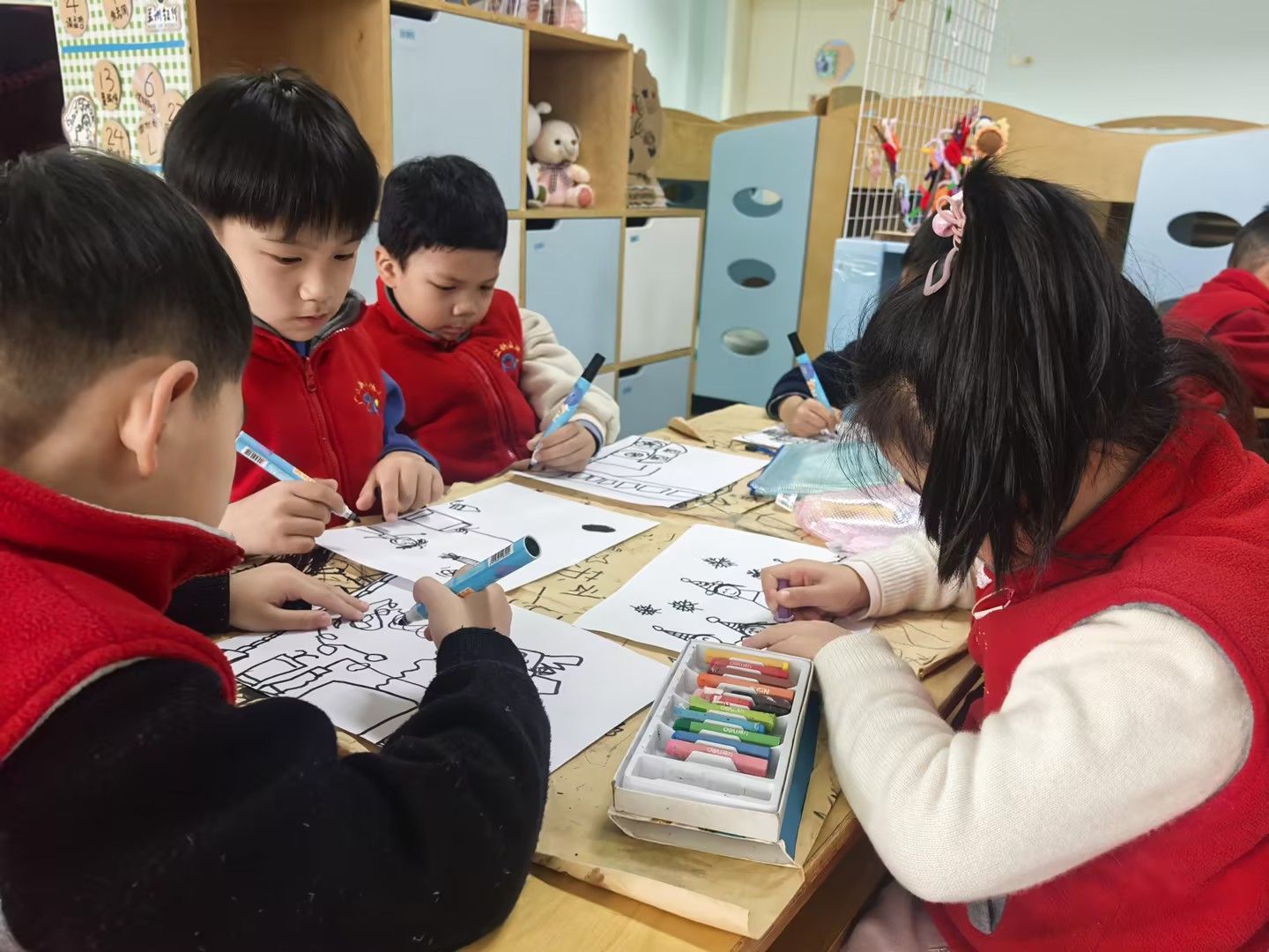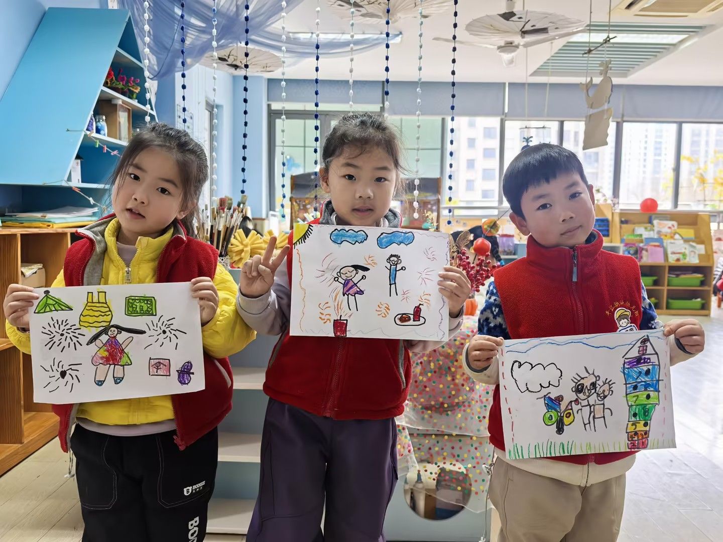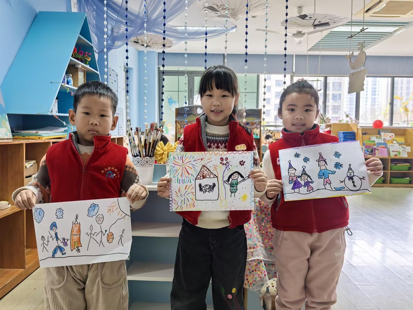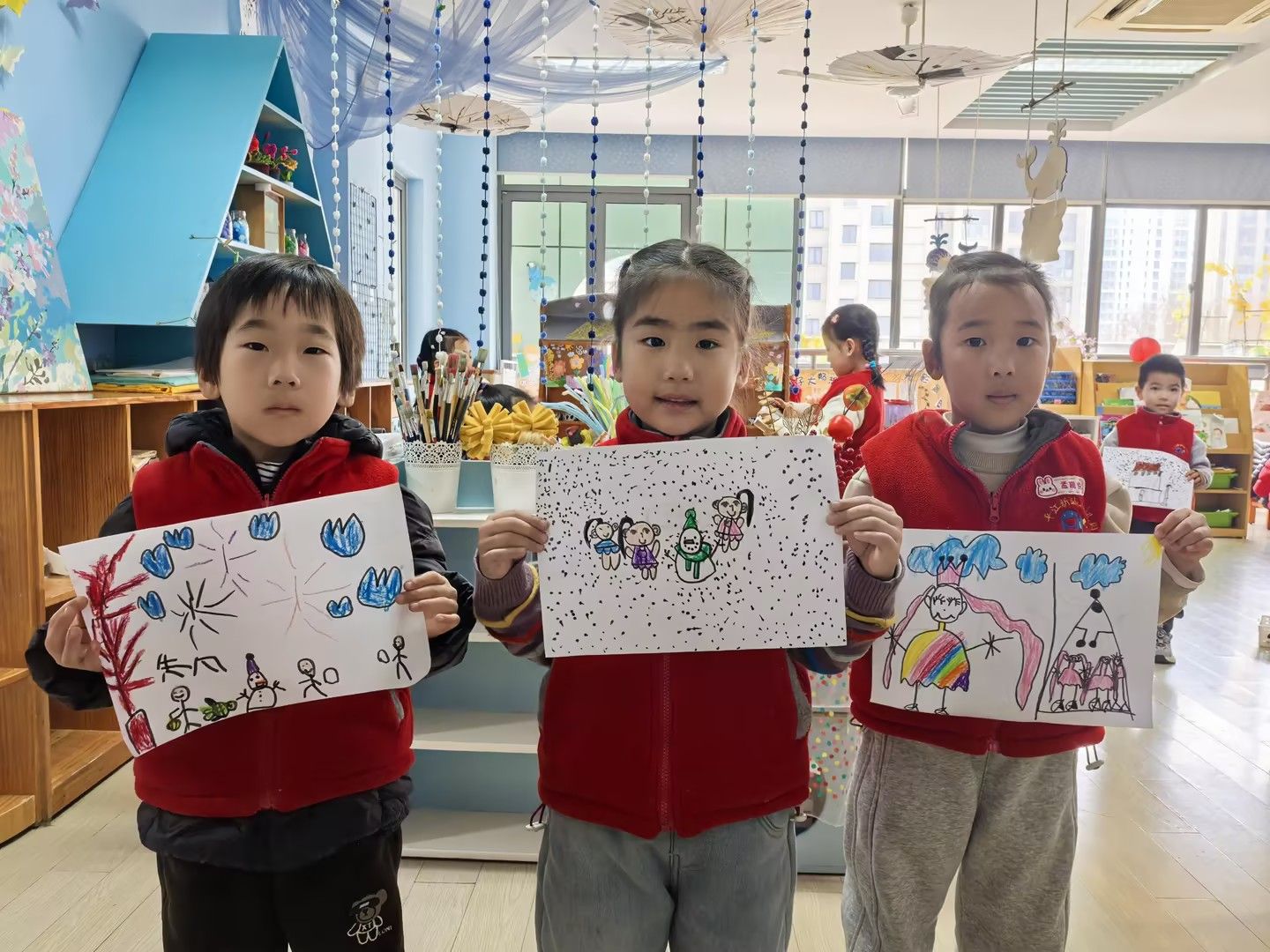 “我想和爸爸妈妈堆一个比我还高的雪人!”五岁的乐乐指着自己的画说道。孩子们的画作不仅展现了他们对假期的期待,更透露出对家庭温暖和探索世界的渴望。在艺术表达中激发想象力,为寒假生活增添了第一抹亮色。