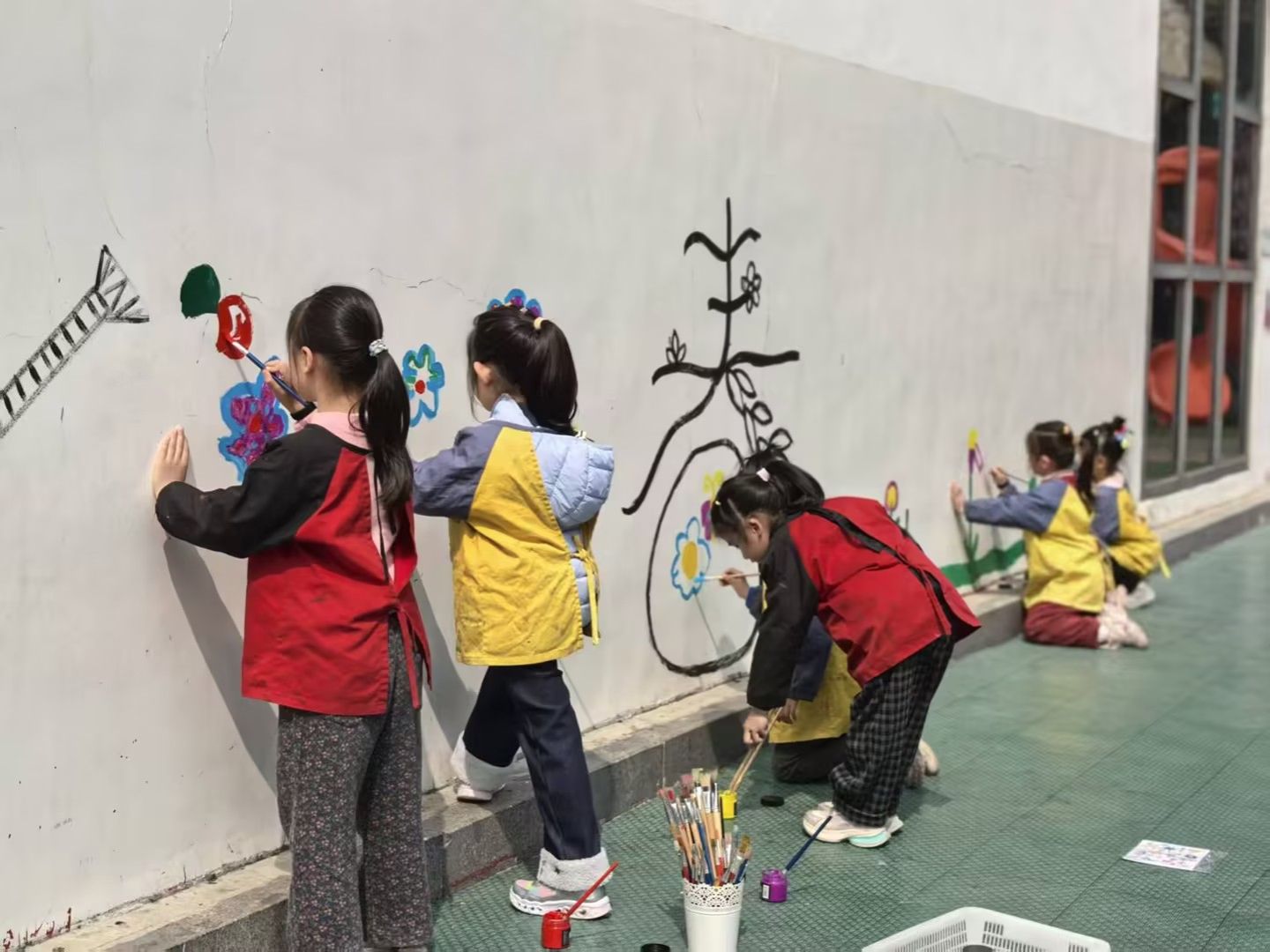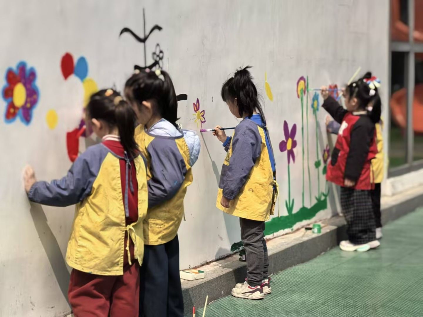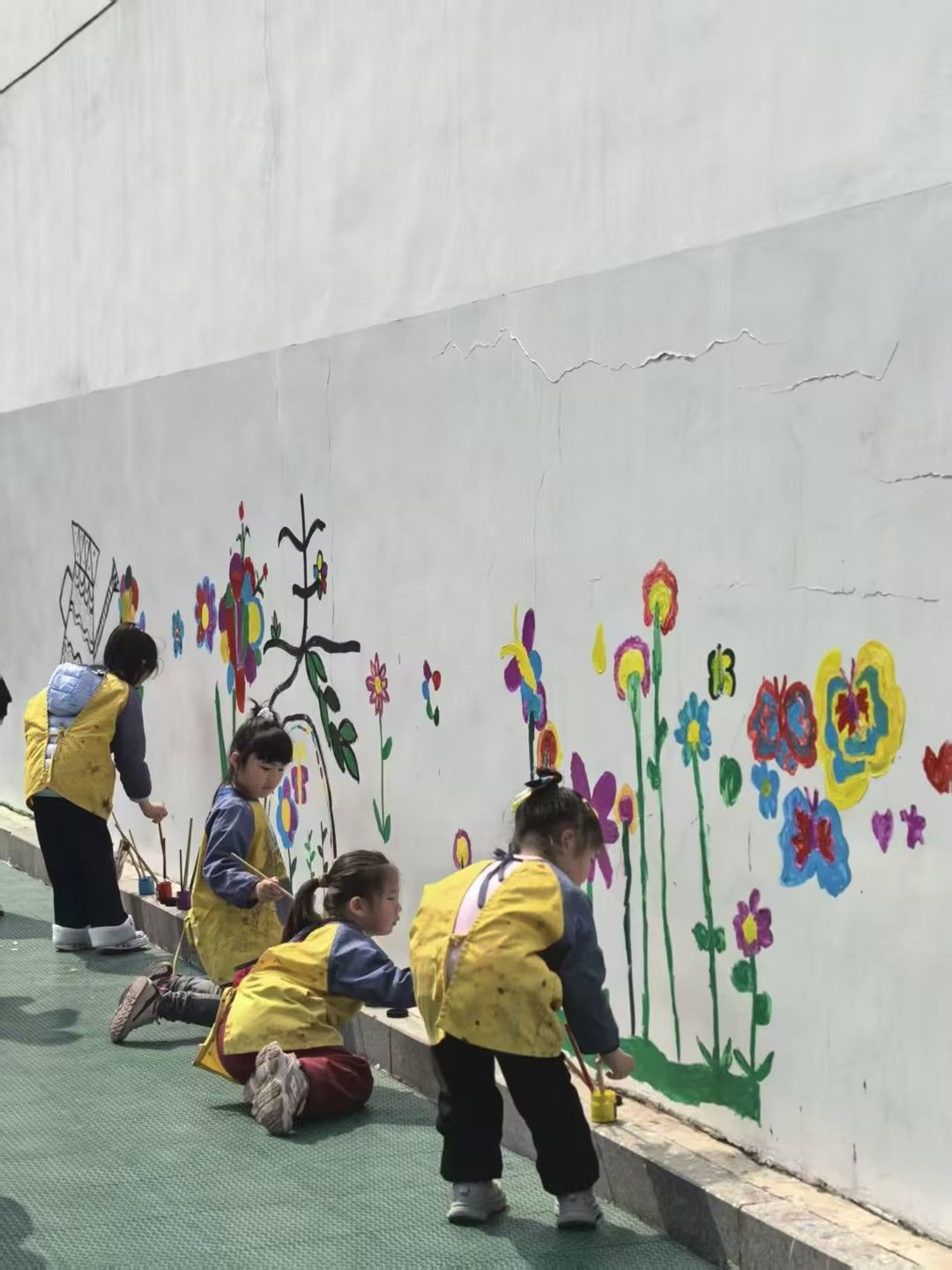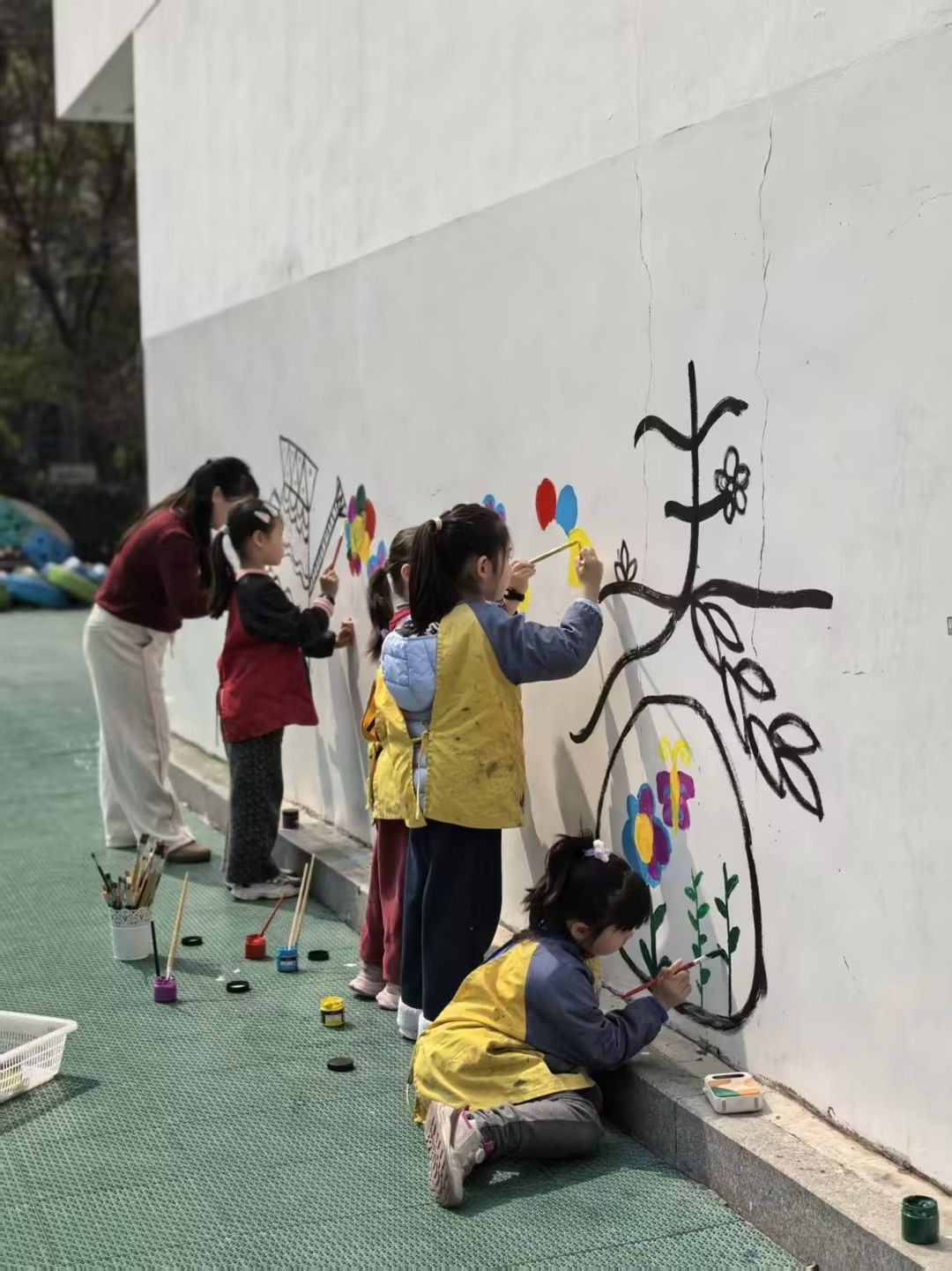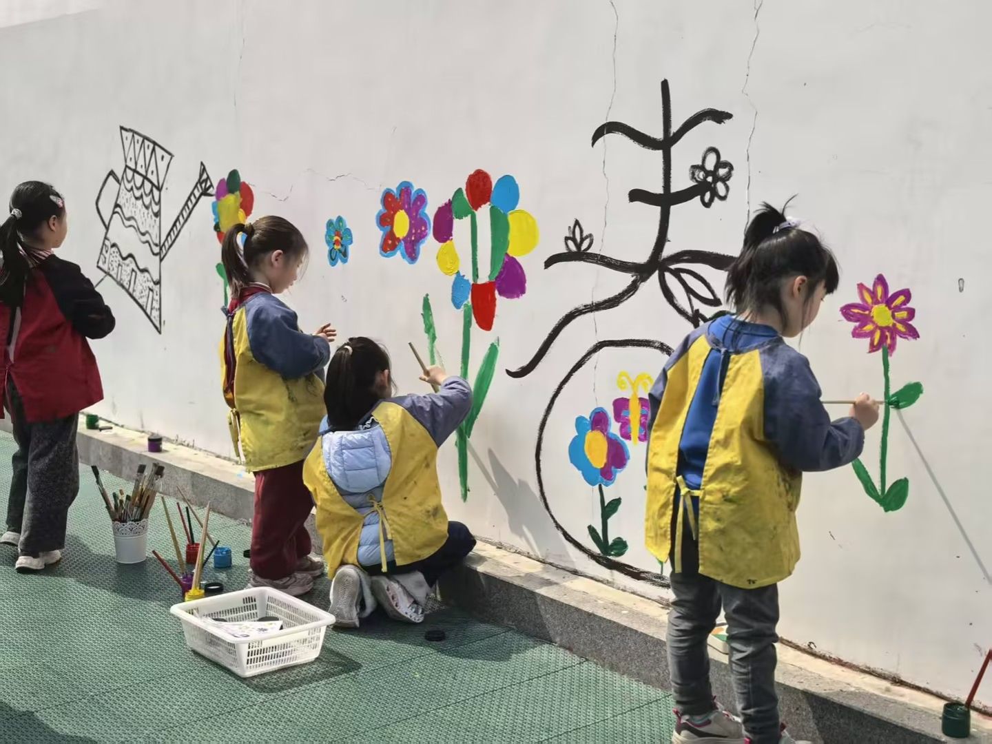 随后,孩子们手持画板、彩笔和油画棒,开始自由创作。他们或专注勾勒花朵轮廓,或用大胆的色彩填涂心中的春天。有的孩子画出了向阳而生的向日葵,有的描绘了蝴蝶在花丛中飞舞的景象,还有的用点彩的方式表现出一片缤纷花海。稚嫩的笔触下,春天的生机与童真的想象力交相辉映。