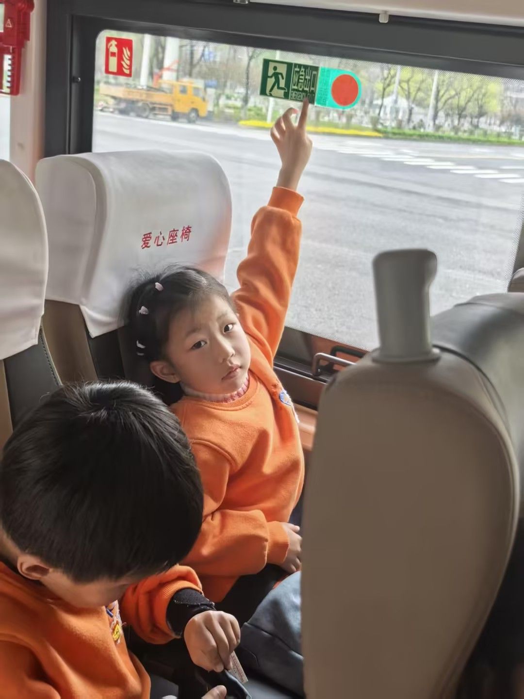 随后,孩子们走进公交车厢,近距离认识安全锤、灭火器、应急开关和逃生窗等设施,了解紧急情况下的正确逃生方法。下朋友们知道了安全标识的作用。