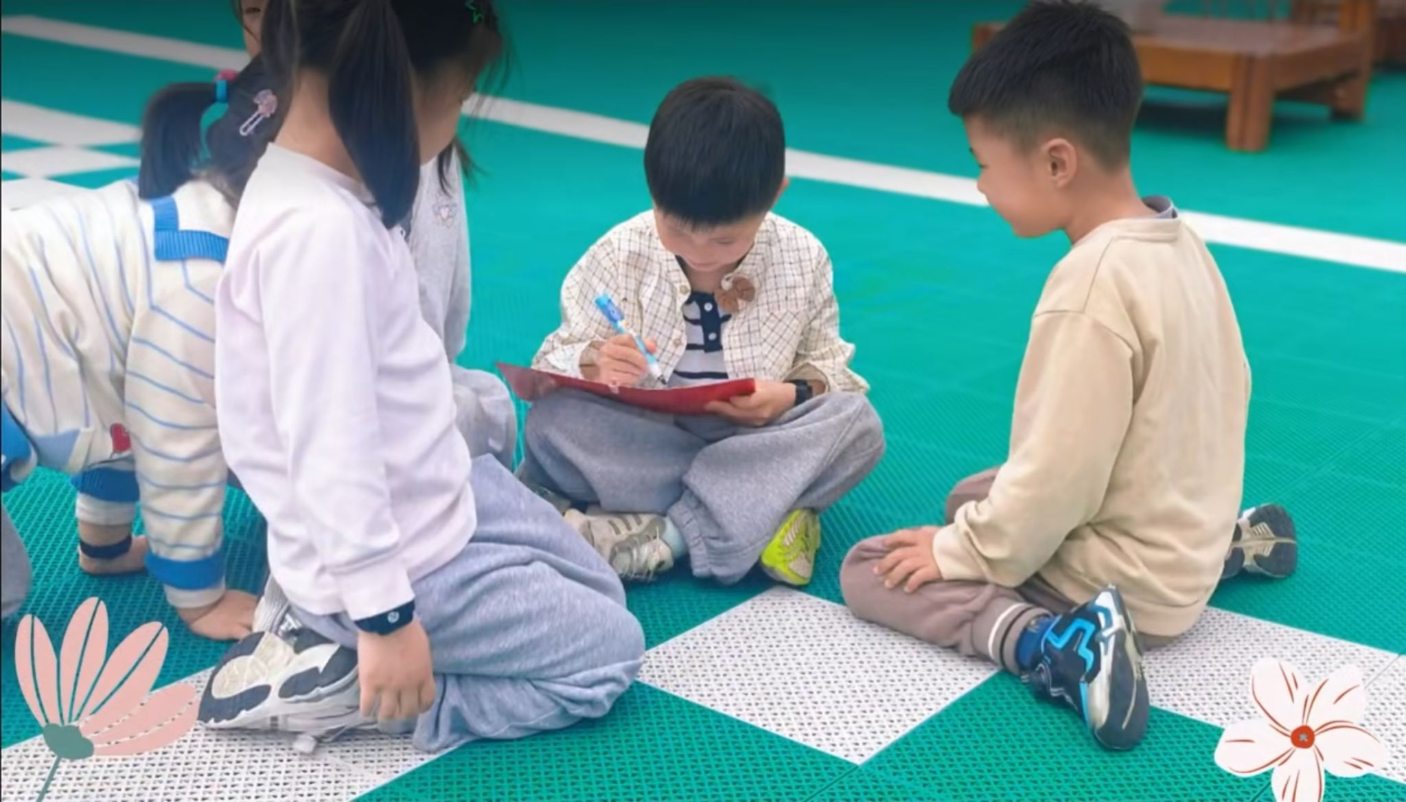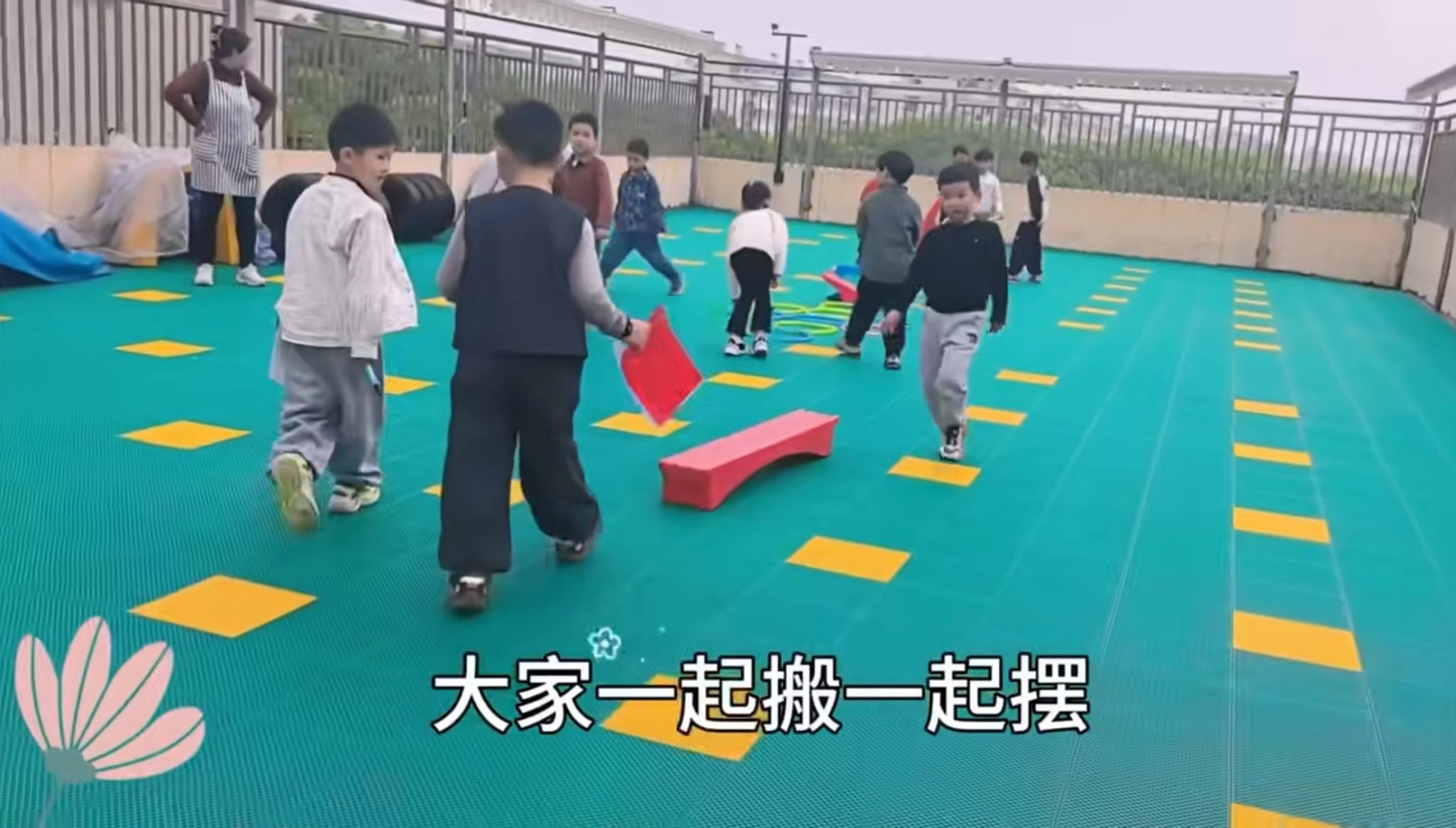 活动现场,有人用跨栏架搭成“丛林穿越”,有人将呼啦圈摆成“青蛙跳台”。大家在自己设计的游戏中尽情奔跑、跳跃,欢声笑语不断。