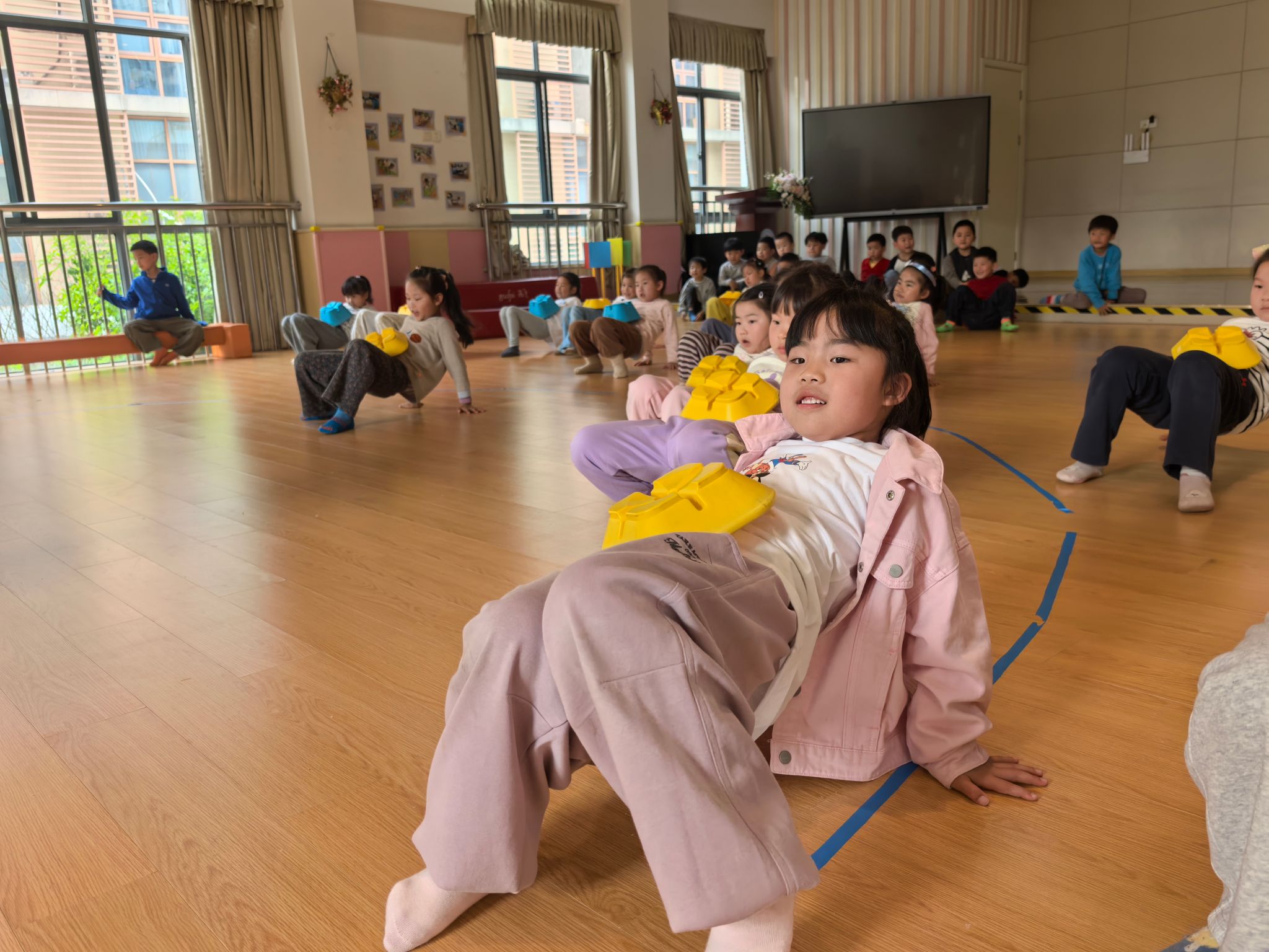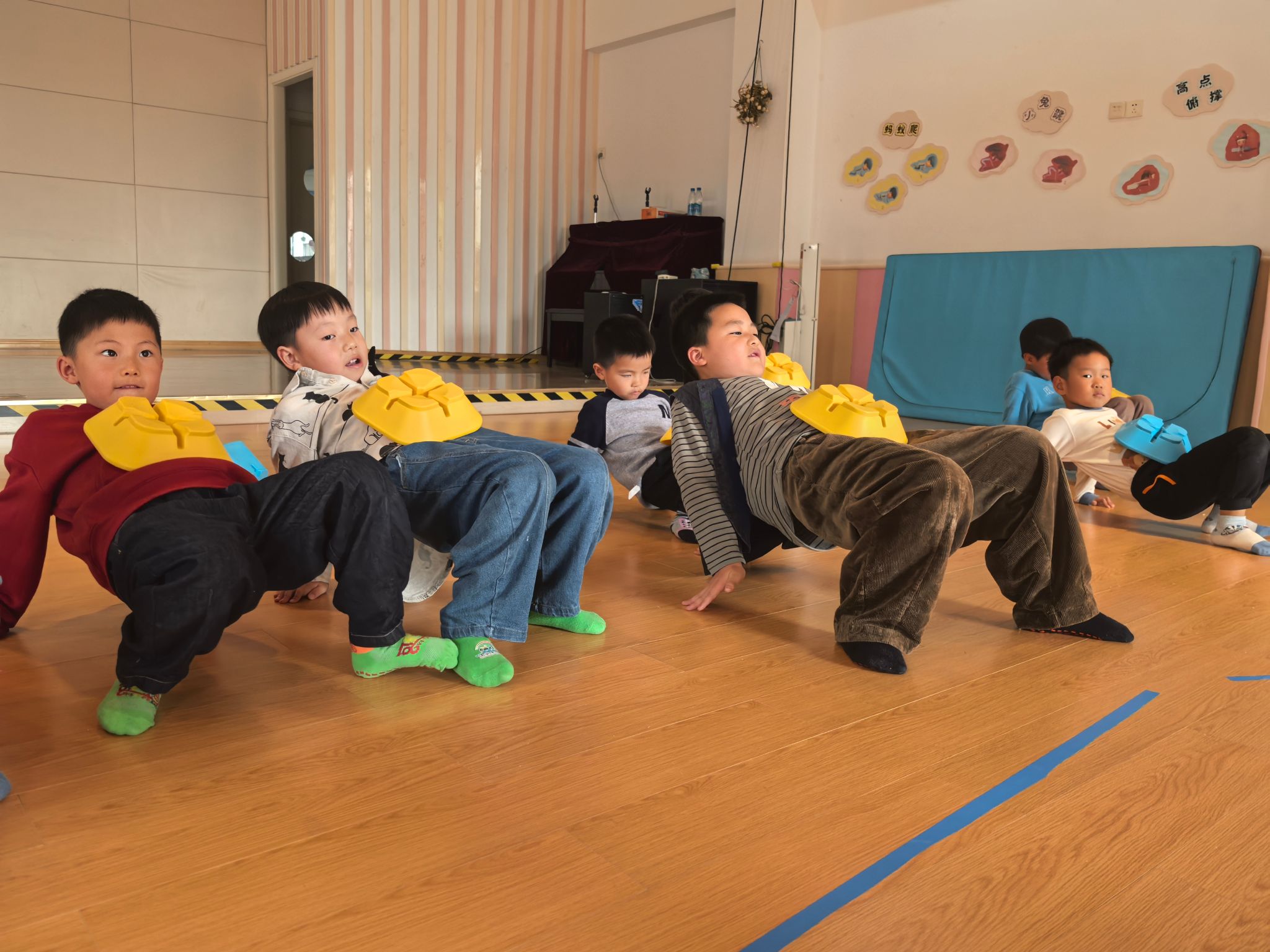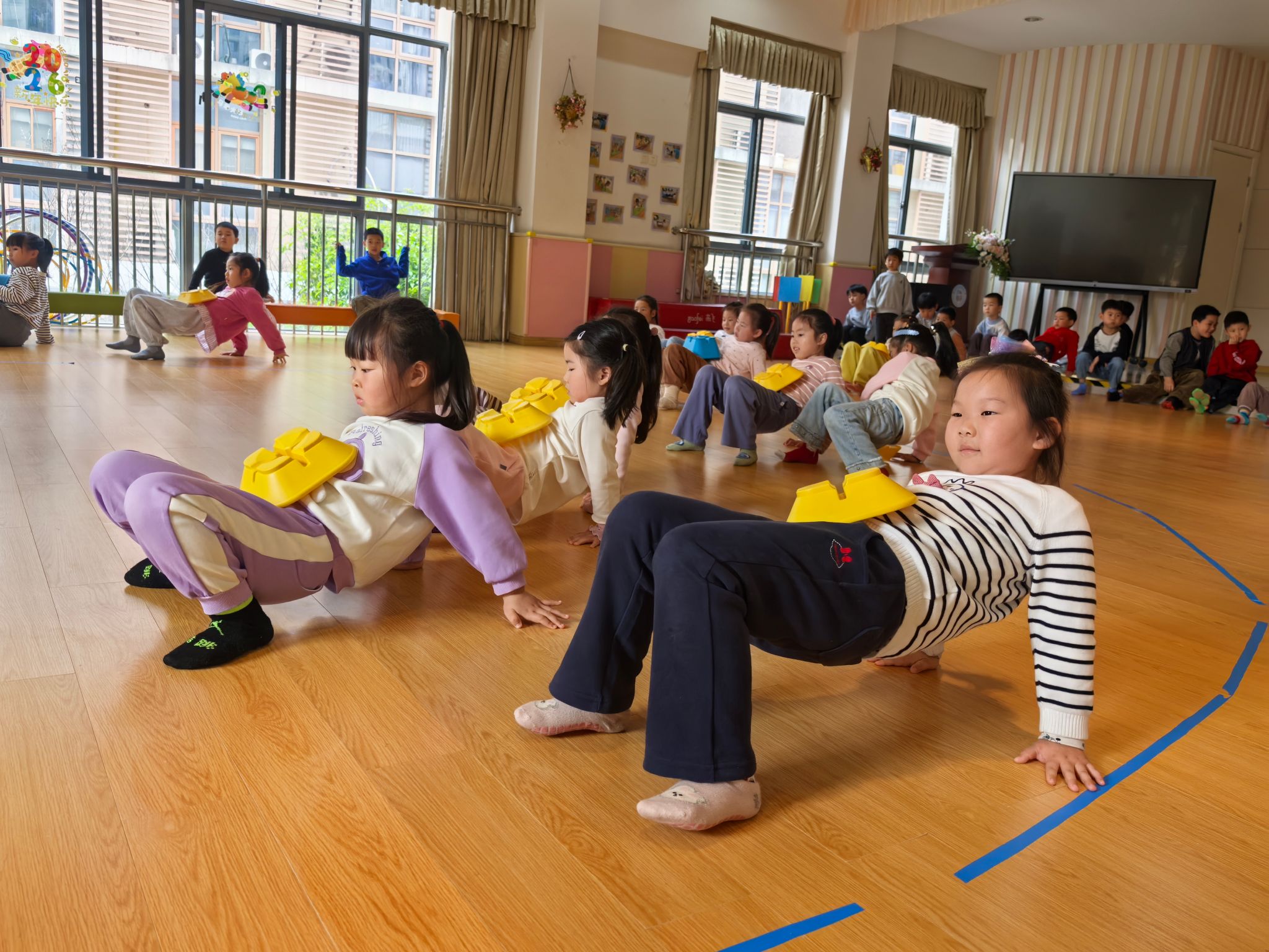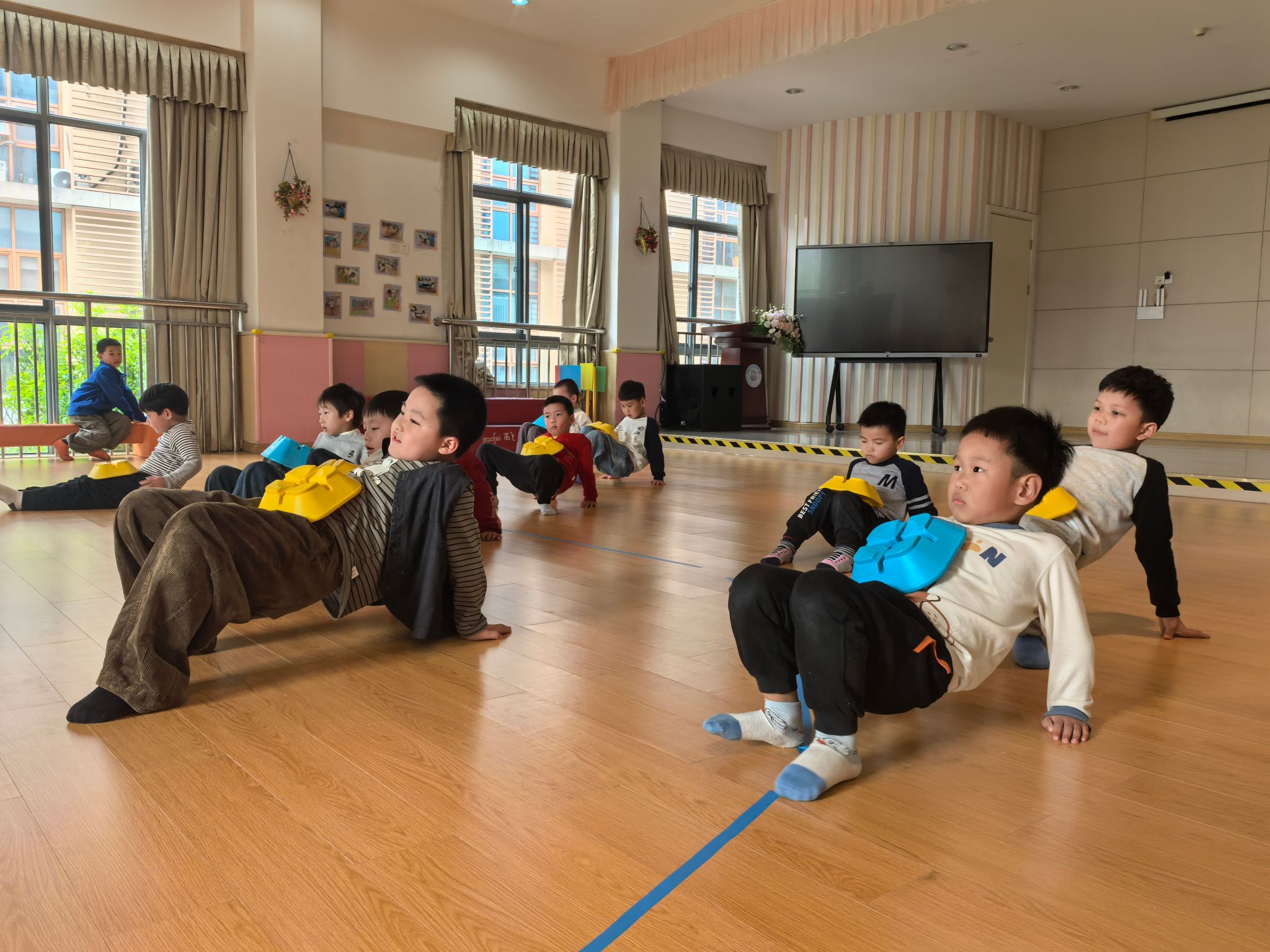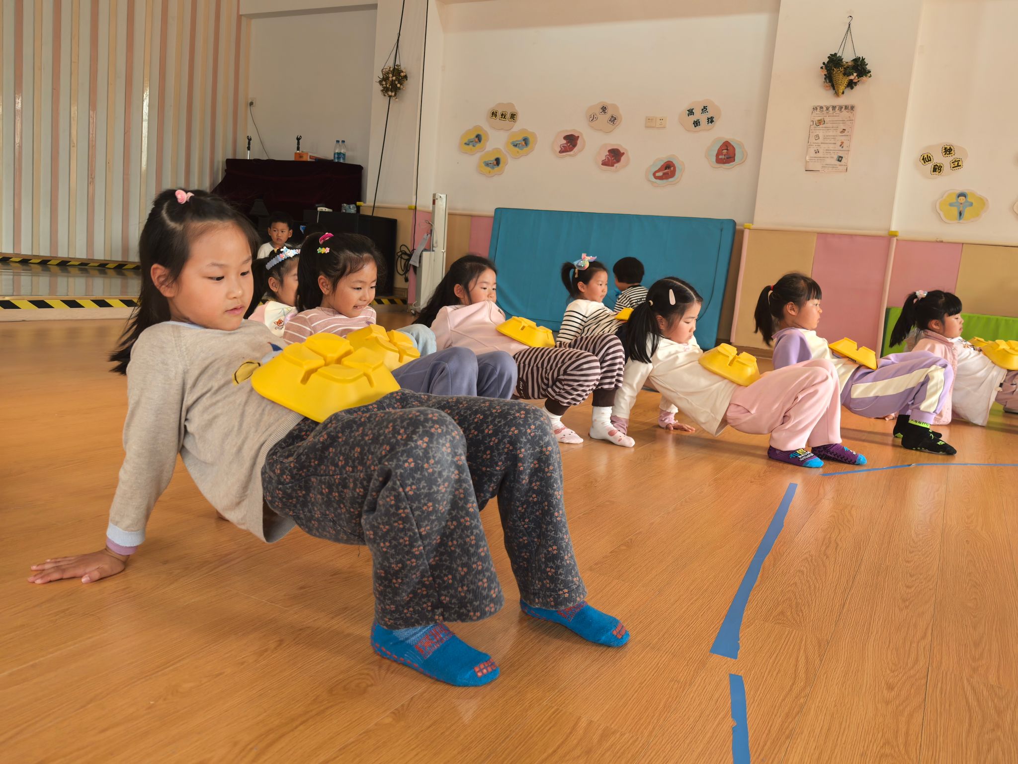 活动中,小朋友们腹部朝上、四肢协调发力,稳稳地运送“货物”,既锻炼了核心力量与四肢协调能力,也提升了身体控制力。“像小货车一样爬,真好玩!”一位小朋友兴奋地说。快乐体操让运动变得有趣又有效,真正实现“在玩中学,在动中长”。