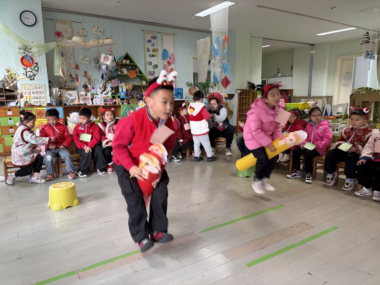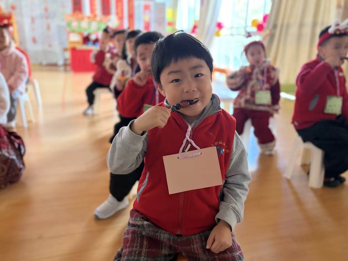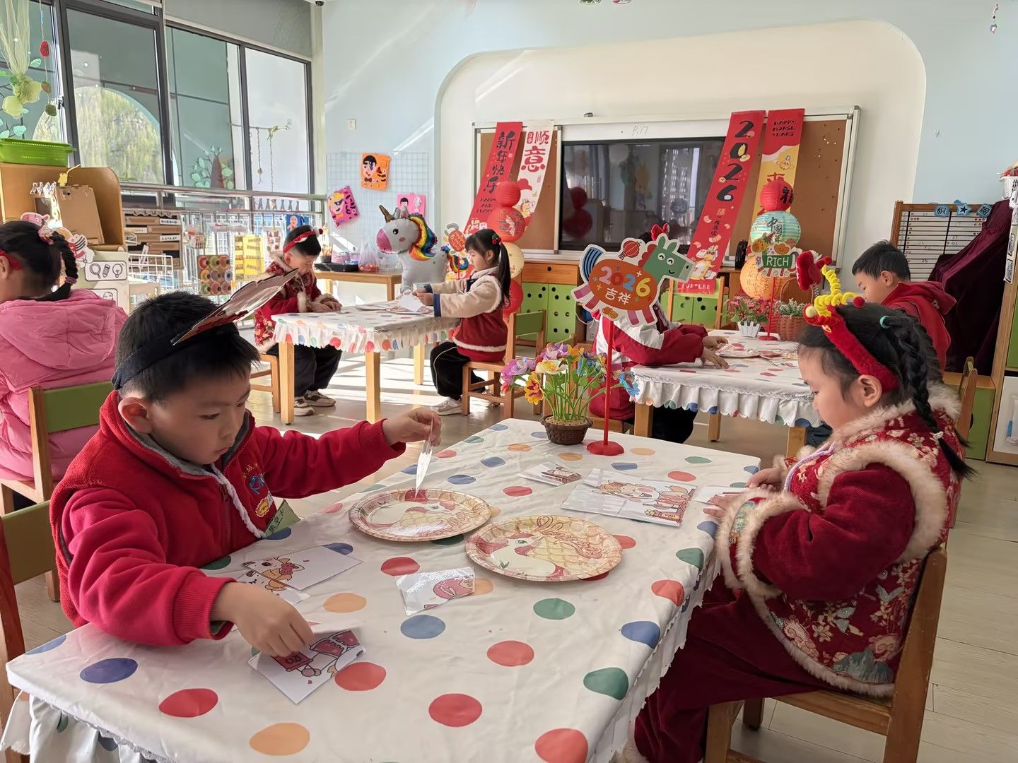 庆元旦,迎新年🎈辞暮尔尔,烟火年年🎆今天幼儿园里张灯结彩,处处洋溢着新年的喜悦。孩子们穿着喜庆的红衣,手里拿着红彤彤的道具,脸上是藏不住的笑意😊教室被气球与拉花装点一新,变成了欢乐的海洋。在这片热闹里,我们和宝贝们一起唱歌、游戏、分享甜蜜。每一张笑脸,都是迎接新年最好的仪式✨愿新的一年,孩子们带着今日的快乐继续奔赴山海,健康成长,无忧无虑!