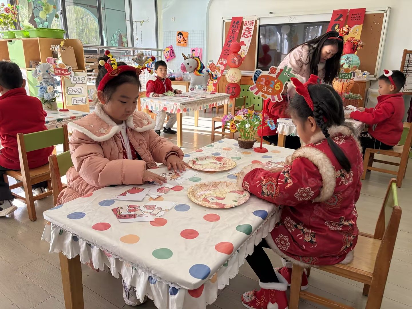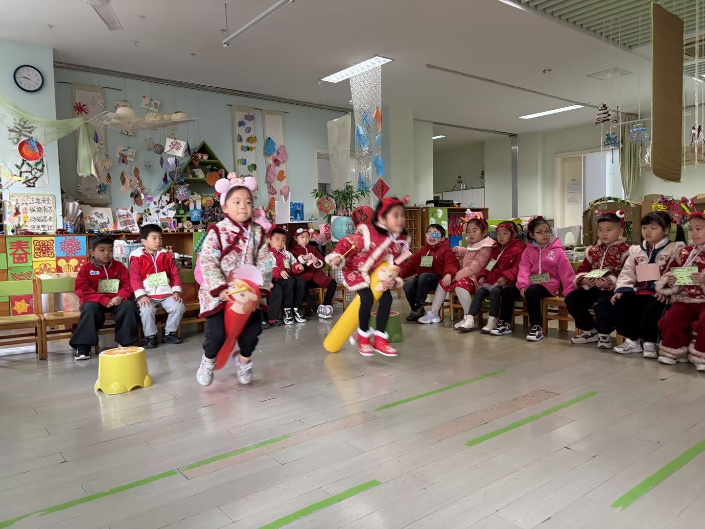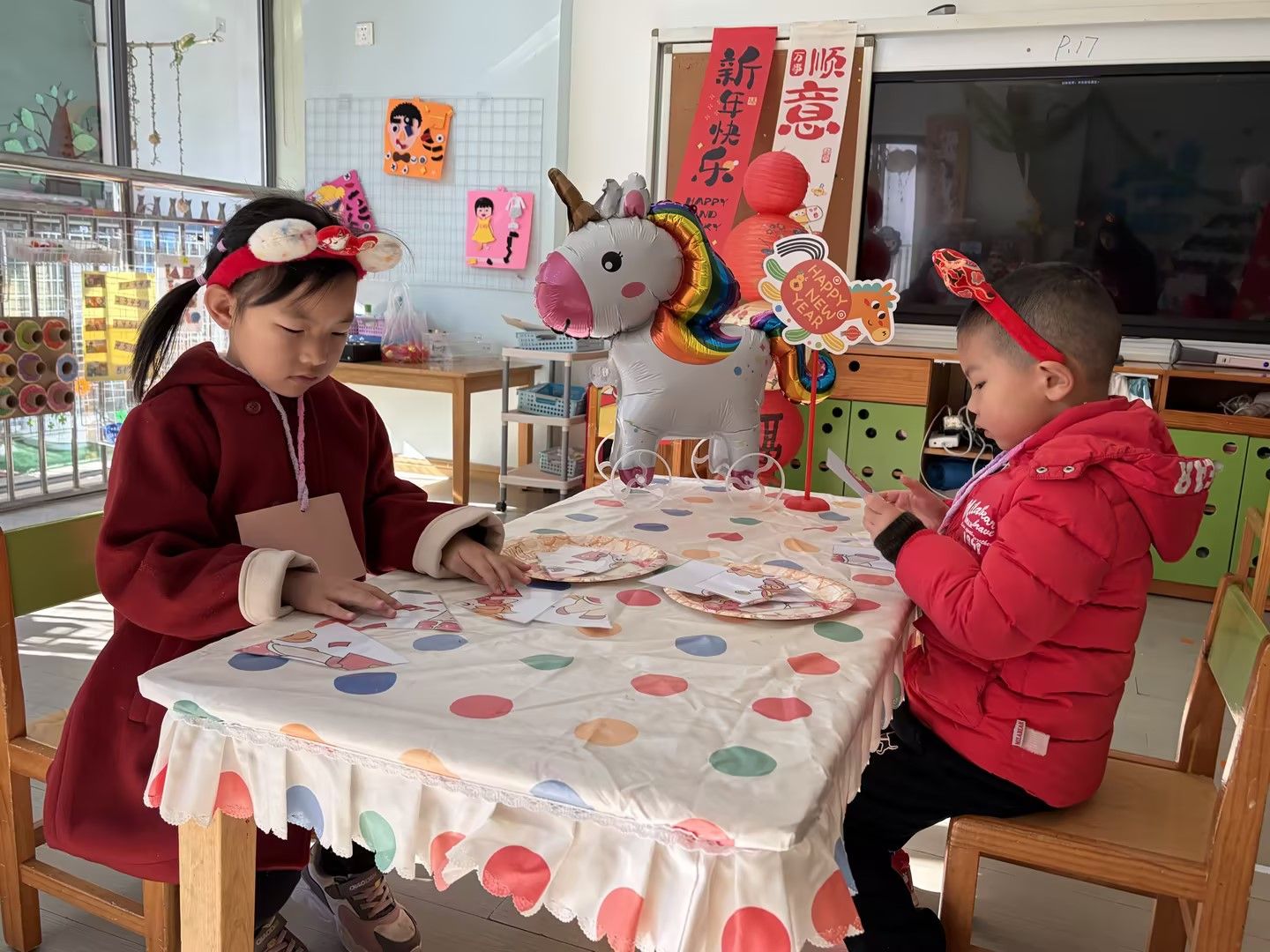 庆元旦,迎新年🎈辞暮尔尔,烟火年年🎆今天幼儿园里张灯结彩,处处洋溢着新年的喜悦。孩子们穿着喜庆的红衣,手里拿着红彤彤的道具,脸上是藏不住的笑意😊教室被气球与拉花装点一新,变成了欢乐的海洋。在这片热闹里,我们和宝贝们一起唱歌、游戏、分享甜蜜。每一张笑脸,都是迎接新年最好的仪式✨愿新的一年,孩子们带着今日的快乐继续奔赴山海,健康成长,无忧无虑!