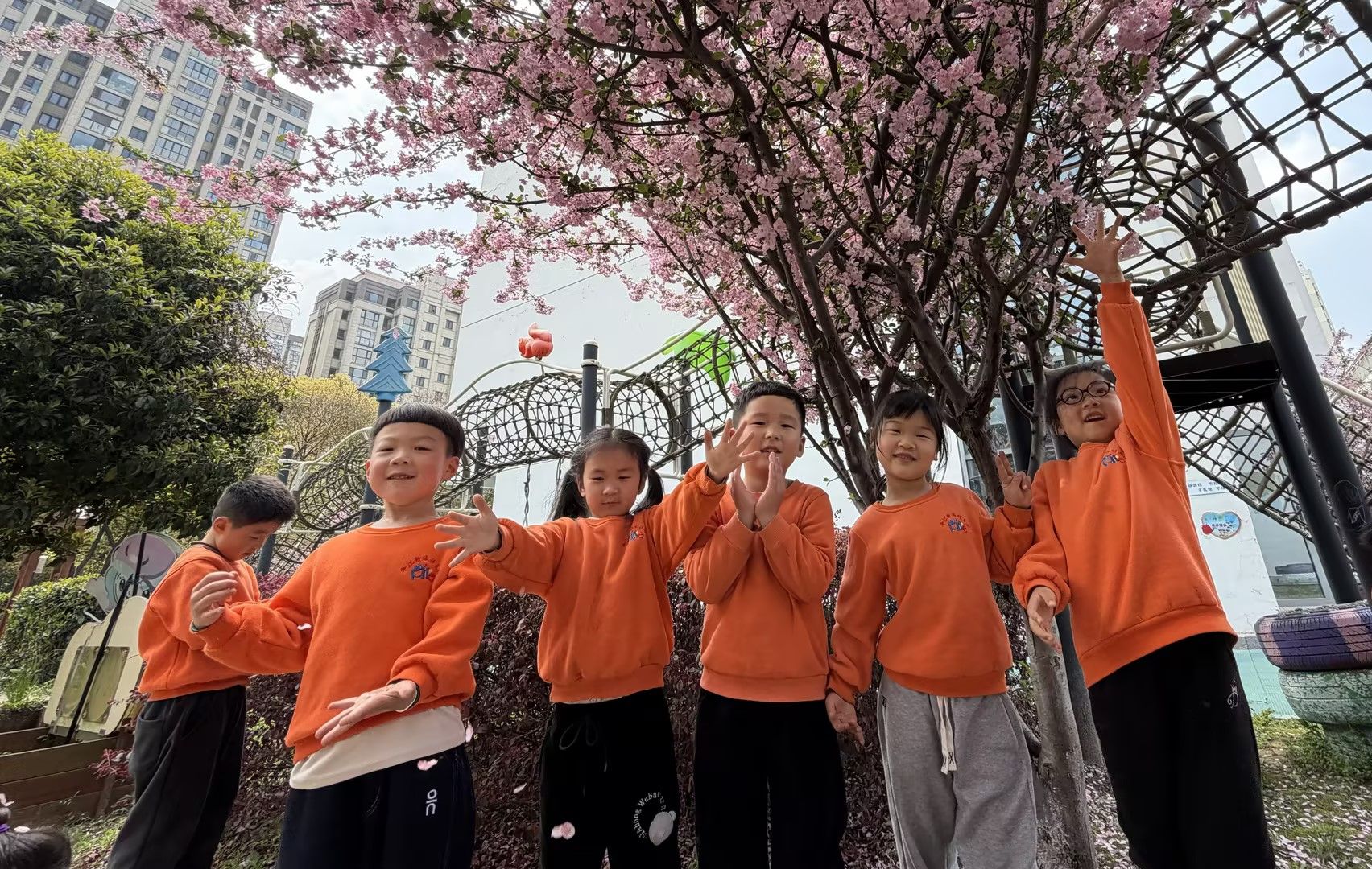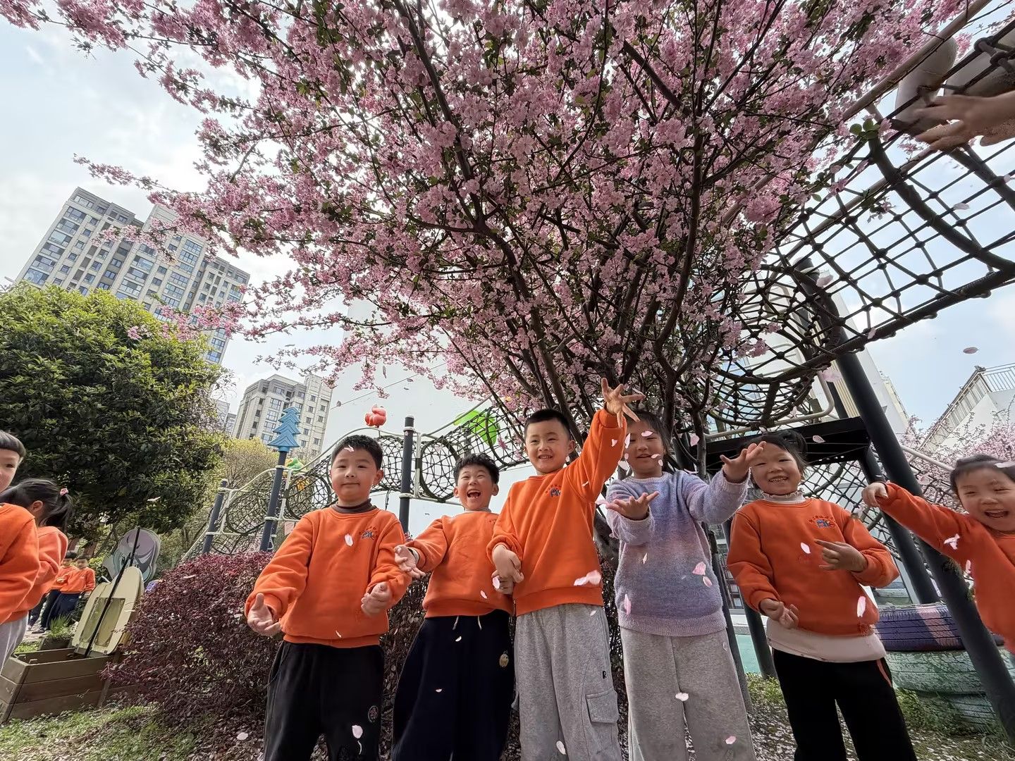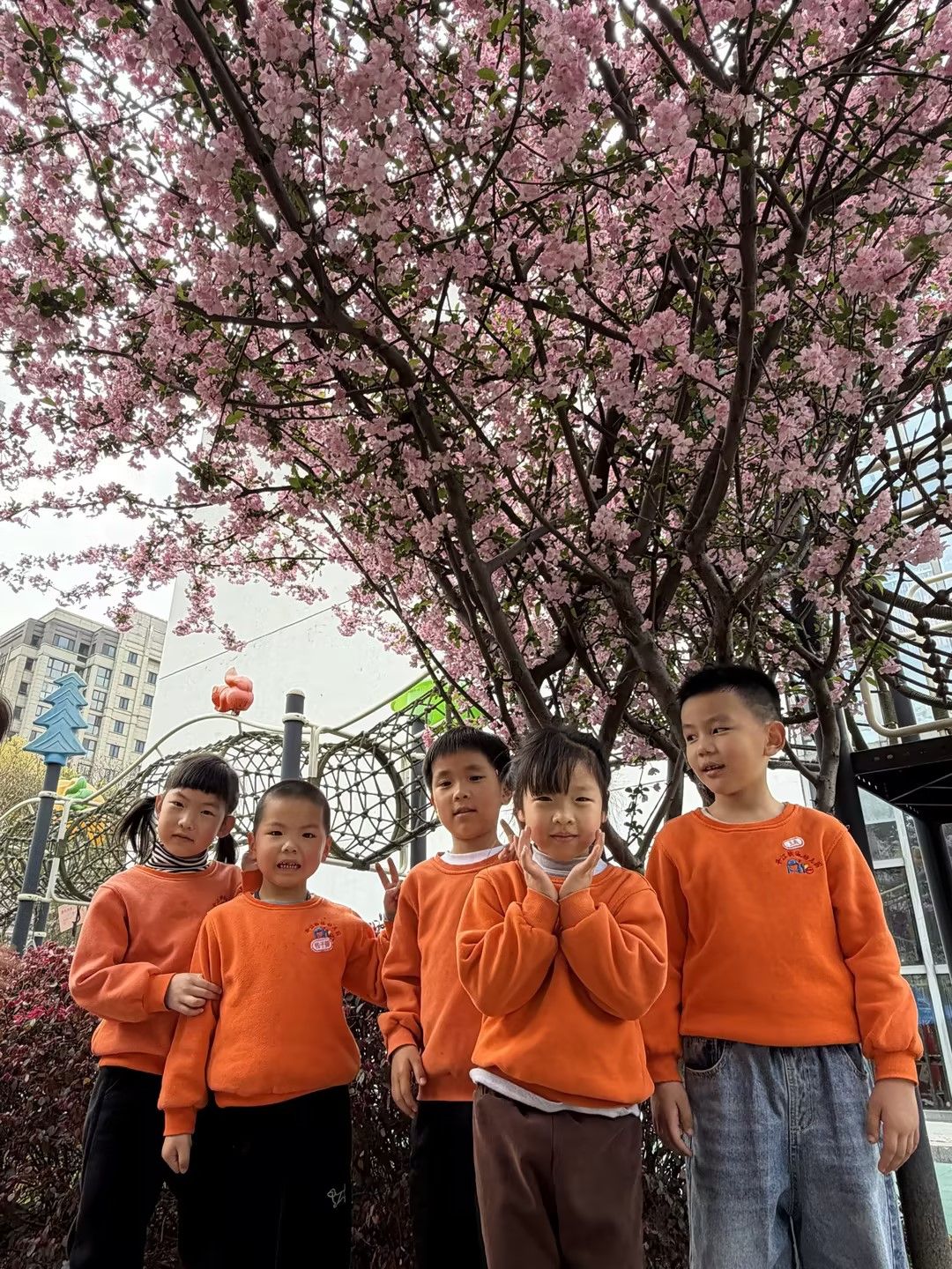 春风拂面,繁花满枝。宝贝们在春日幼儿园里散步,在盛放的花树下定格美好瞬间。粉花映着一张张灿烂的笑脸,孩子们或比耶、或挥手,在花影间尽情嬉笑,感受春日的生机与美好。
