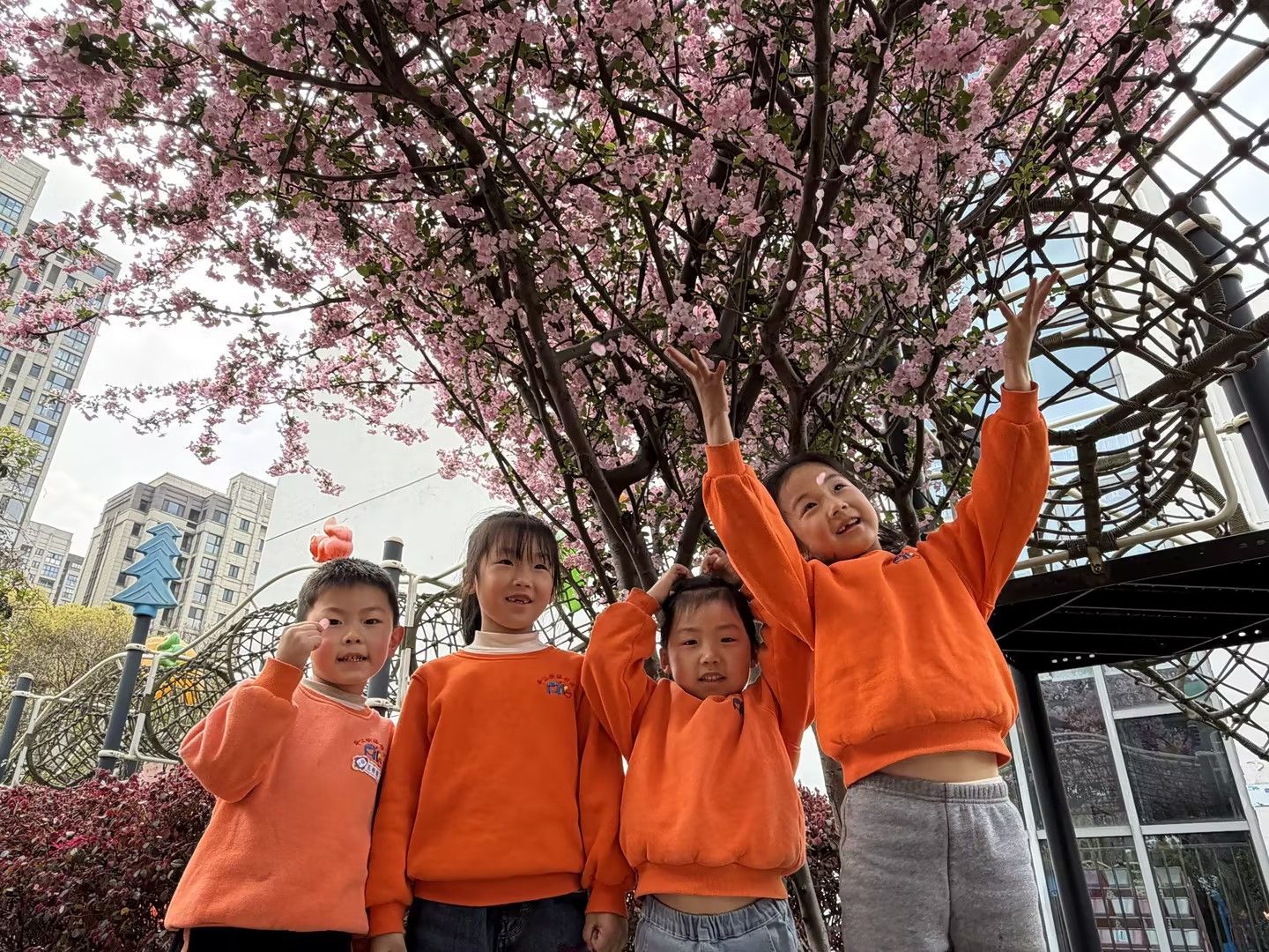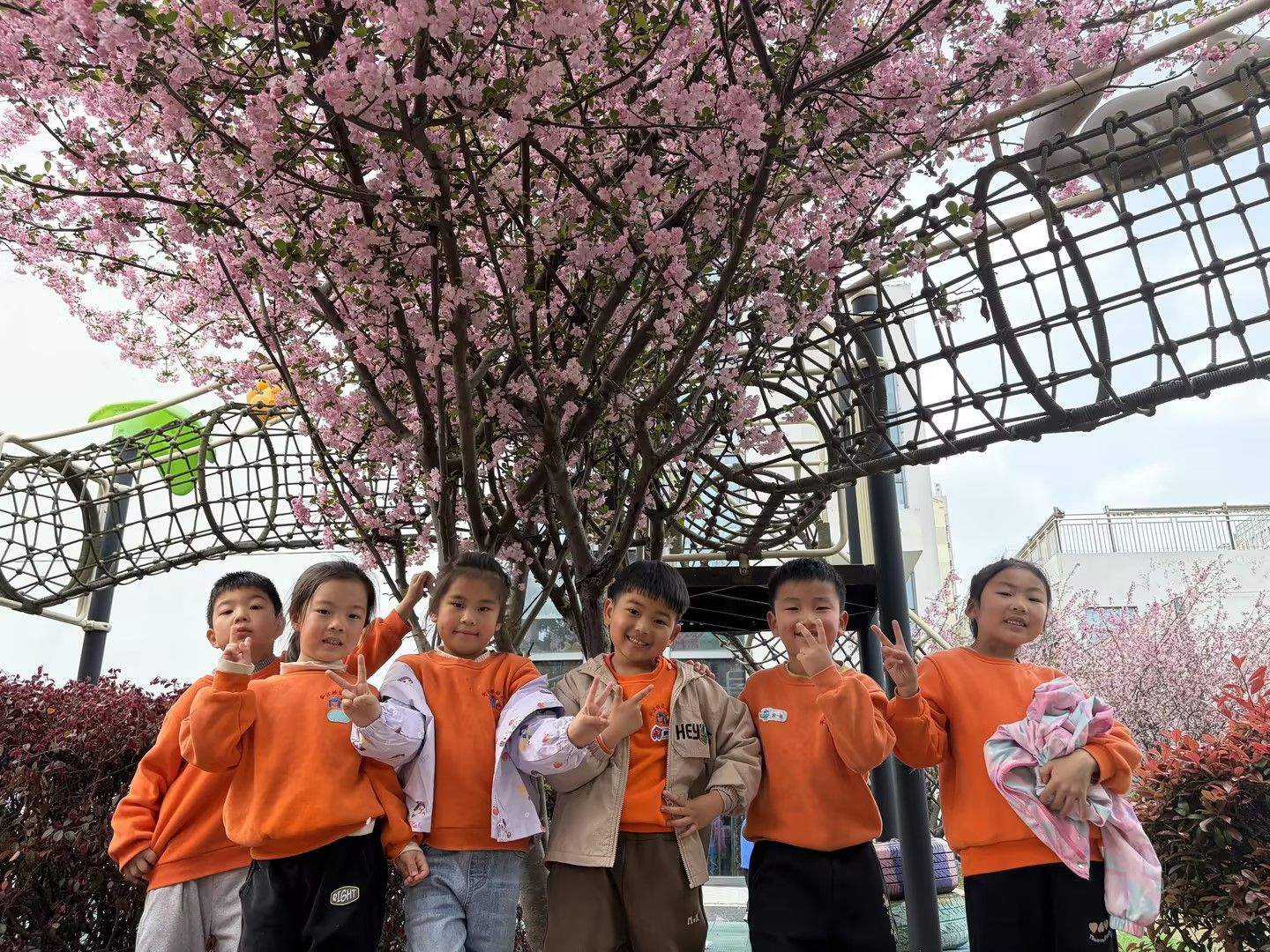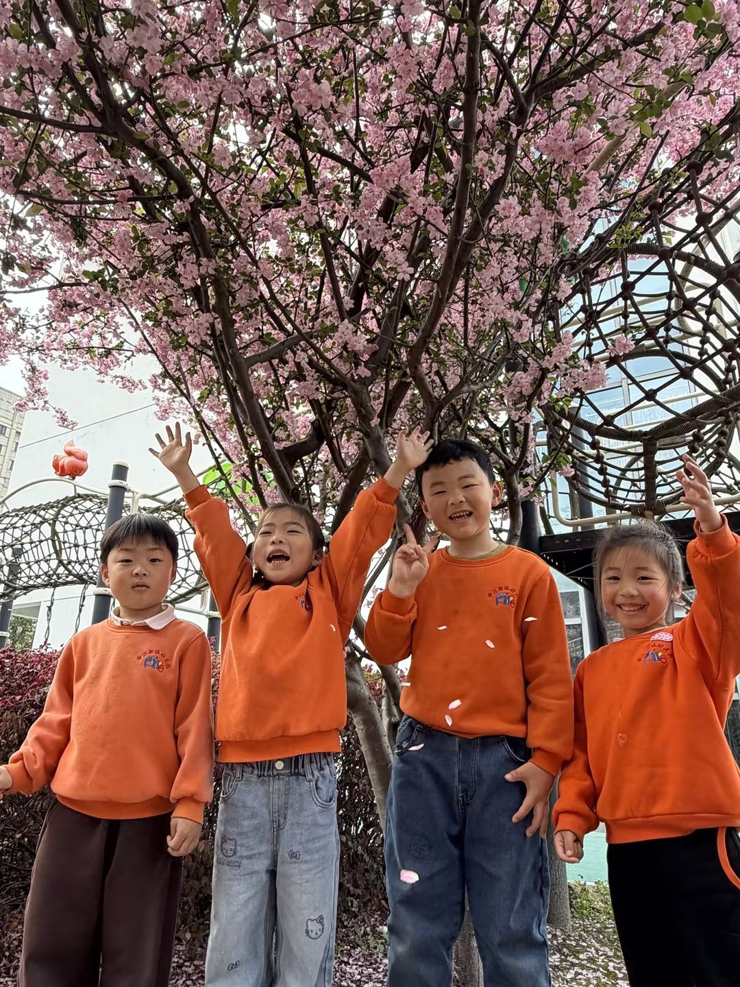 春风拂面,繁花满枝。宝贝们在春日幼儿园里散步,在盛放的花树下定格美好瞬间。粉花映着一张张灿烂的笑脸,孩子们或比耶、或挥手,在花影间尽情嬉笑,感受春日的生机与美好。