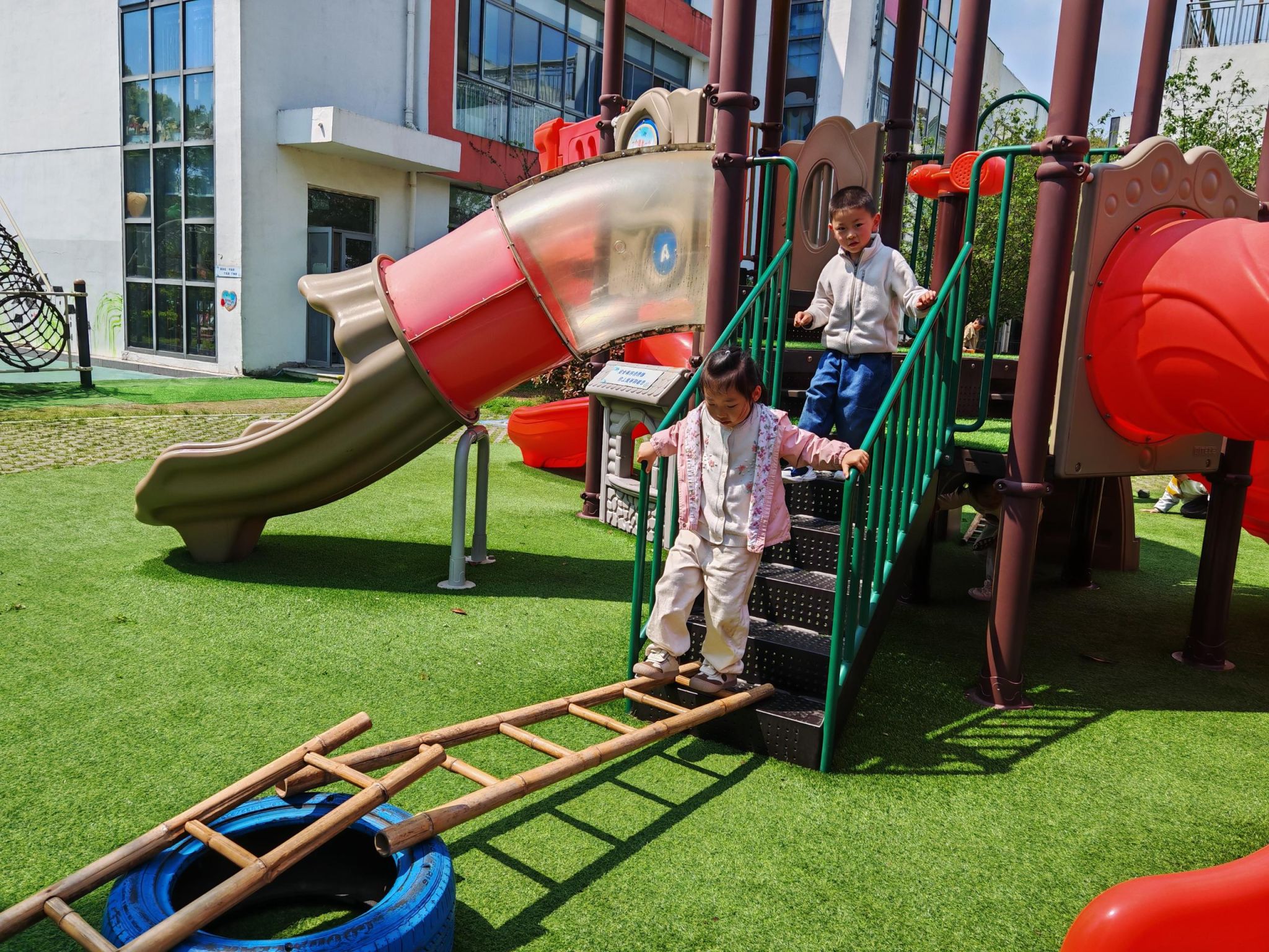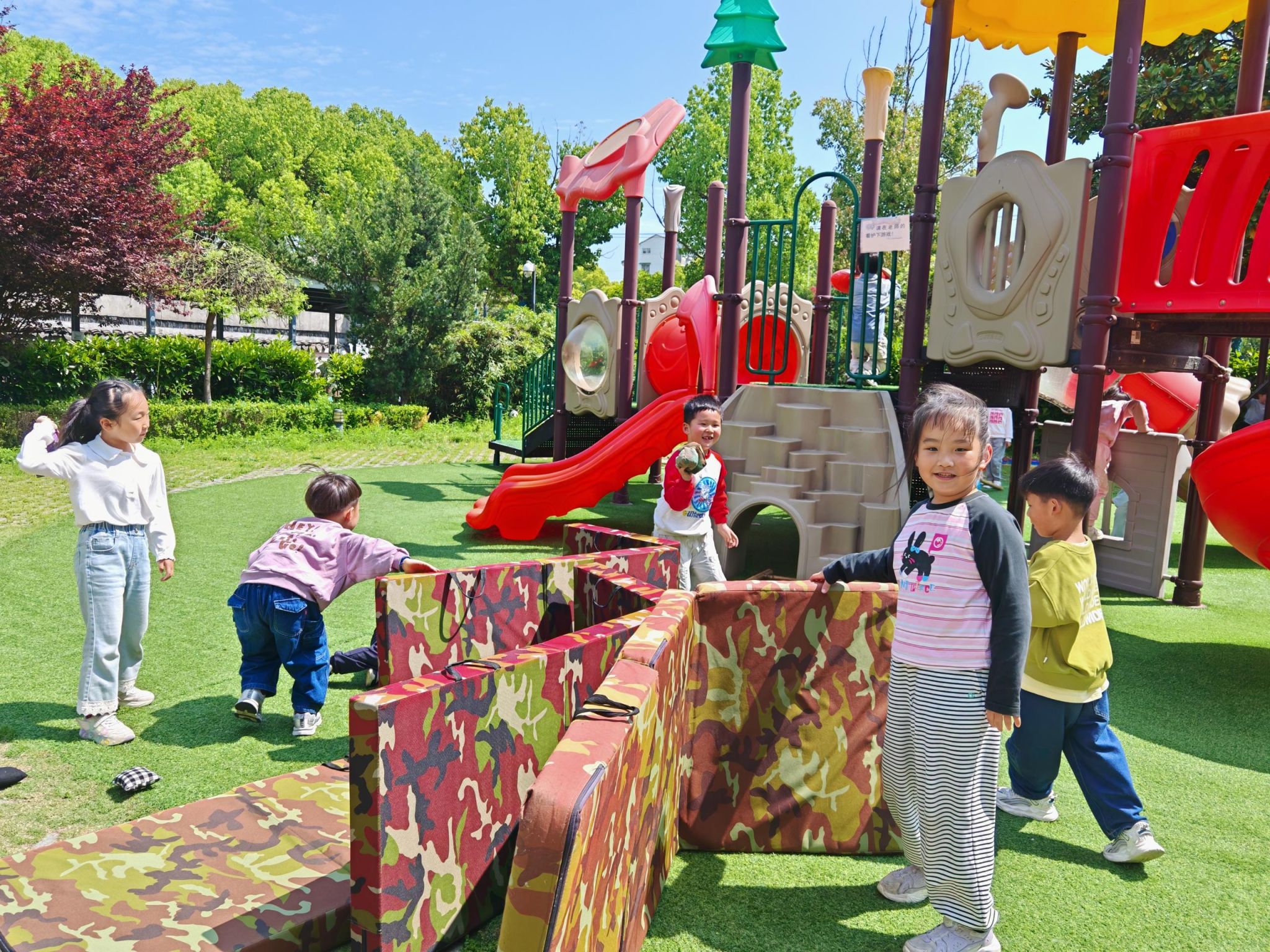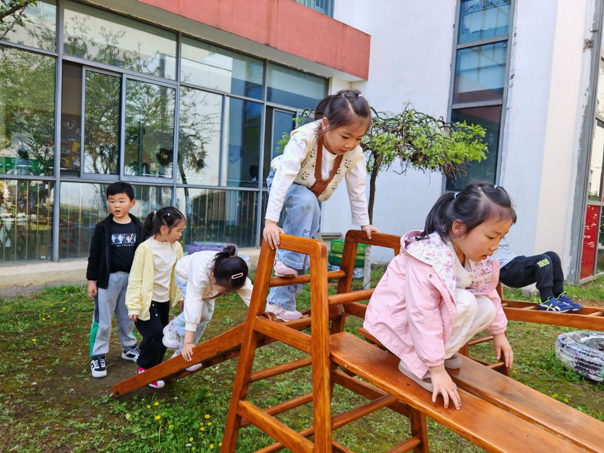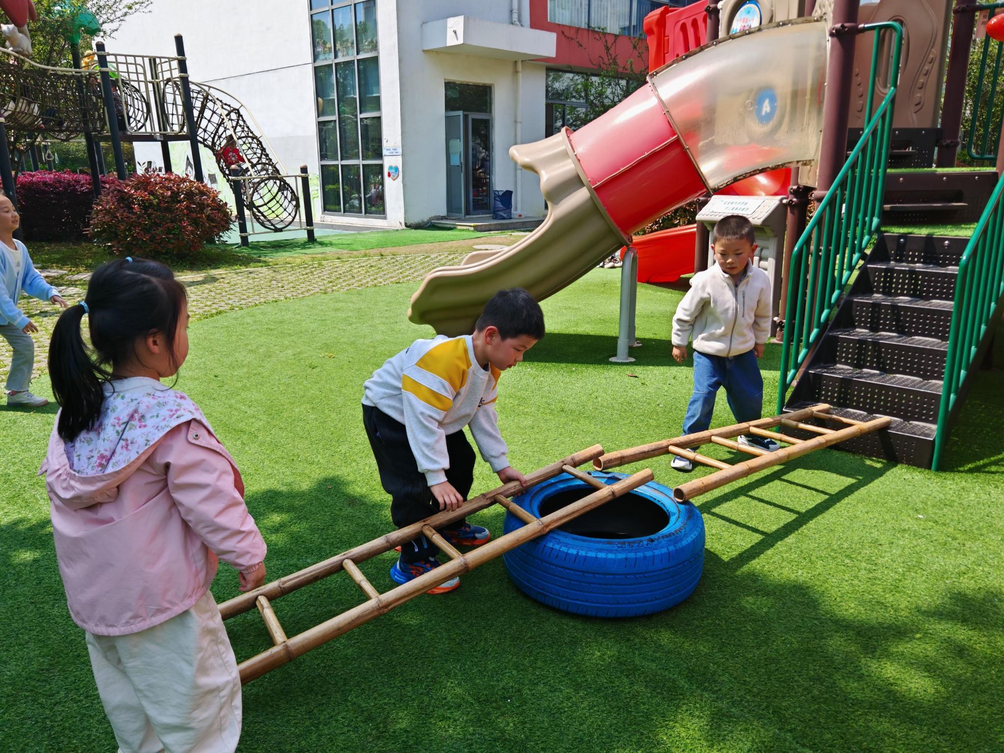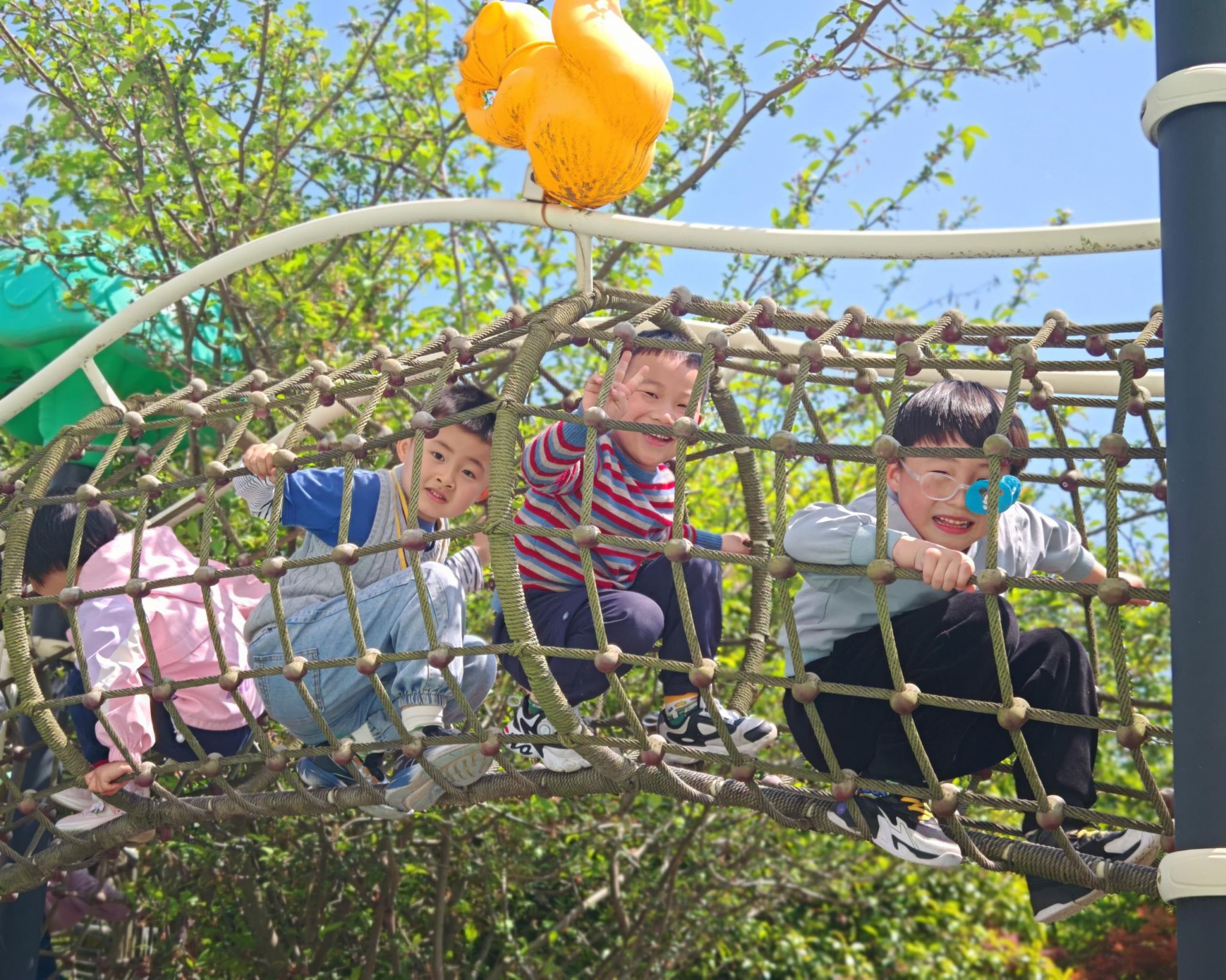 阳光明媚,微风徐徐,我们去户外探险啦。在户外拓展区,孩子们用垫子搭建“堡垒”,用梯子和轮胎搭建小桥,在网通上努力攀爬,在滑索上释放童真,玩的不亦乐乎!