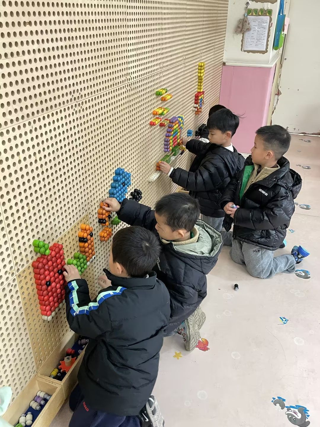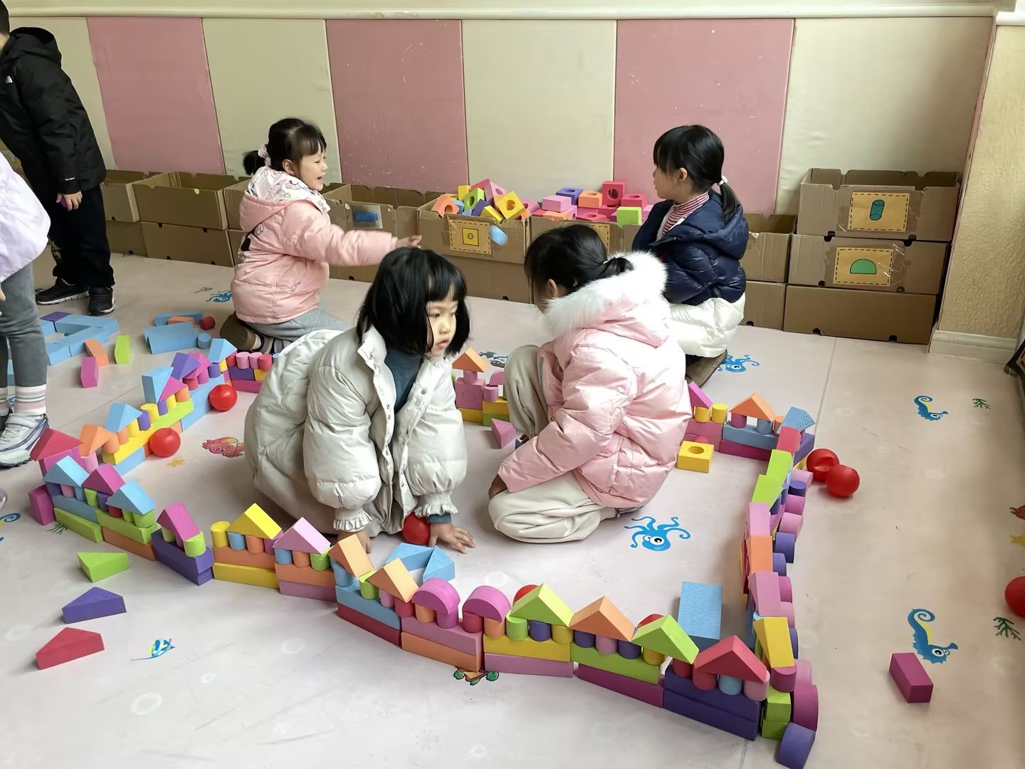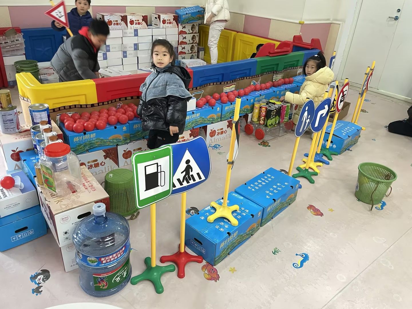 幼儿园的新年大街,正在被一群小能手热火朝天地搭建起来呢!