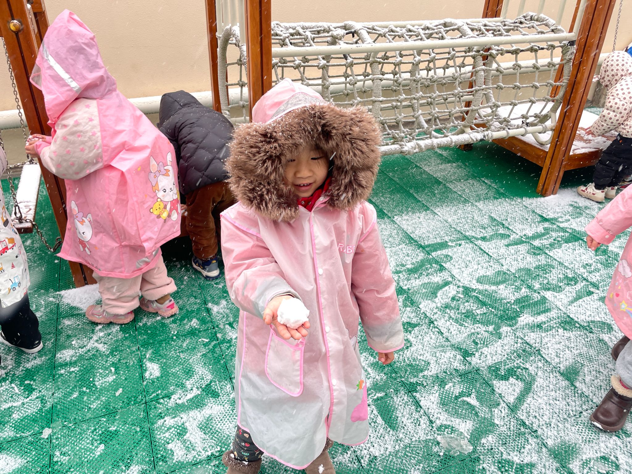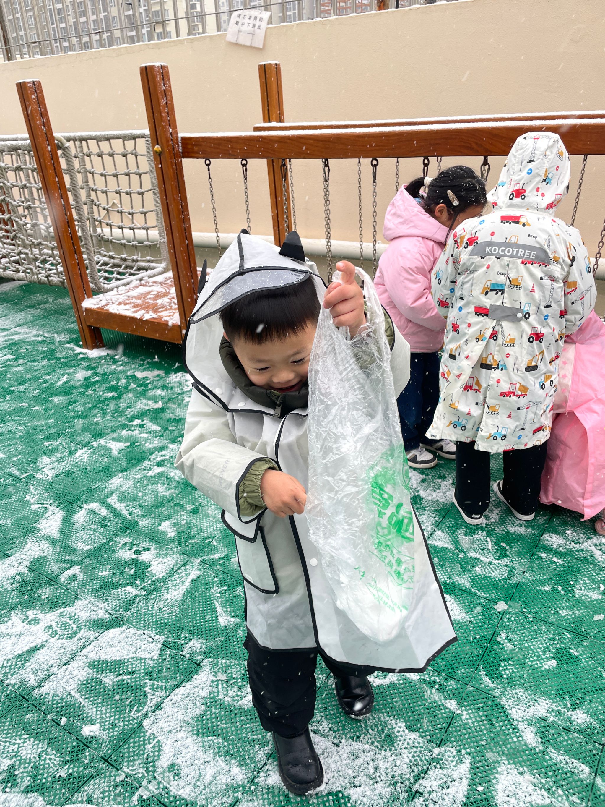 ❄2026年初雪,大四班的小天台里,我们一起接雪花、踩脚印、堆迷你小雪人。从春到冬,有彼此的每一天,都是暖暖的小美好✨