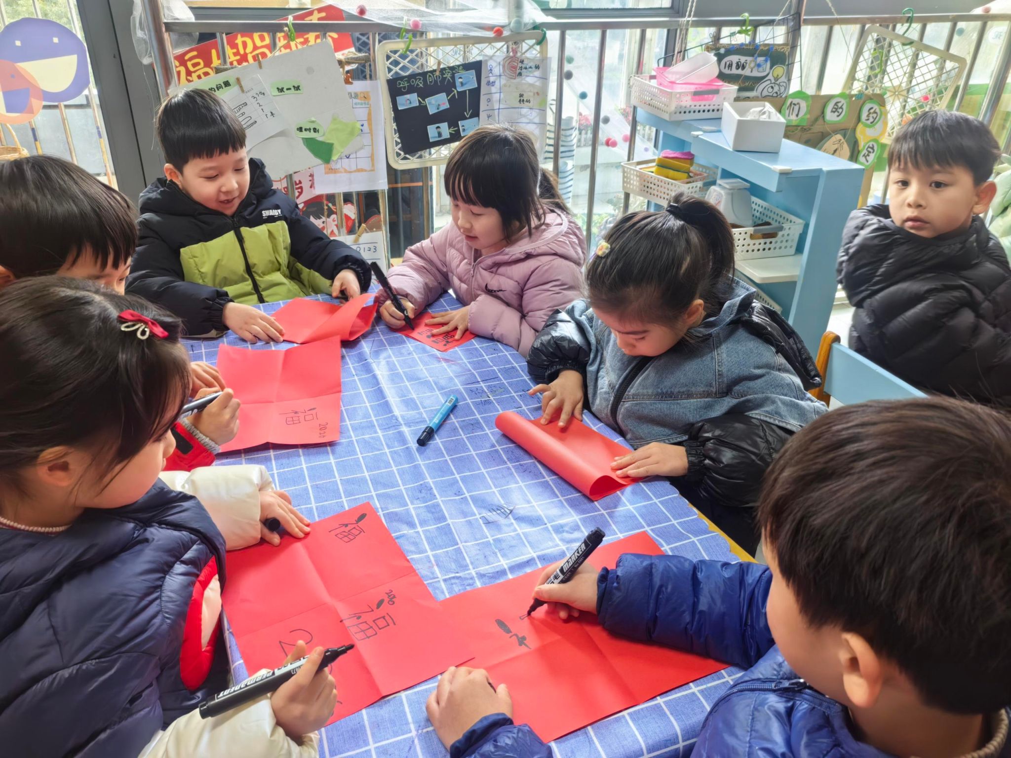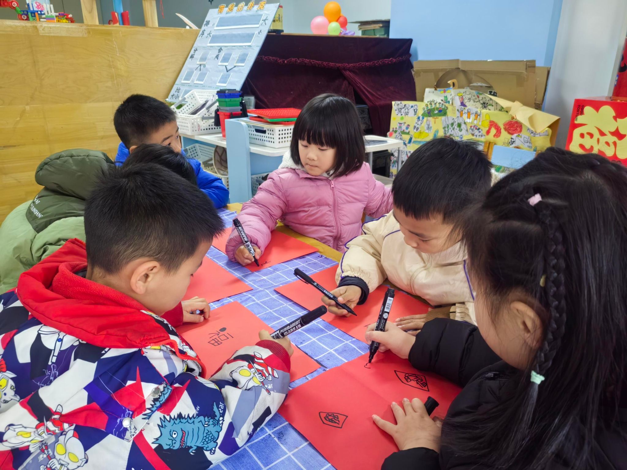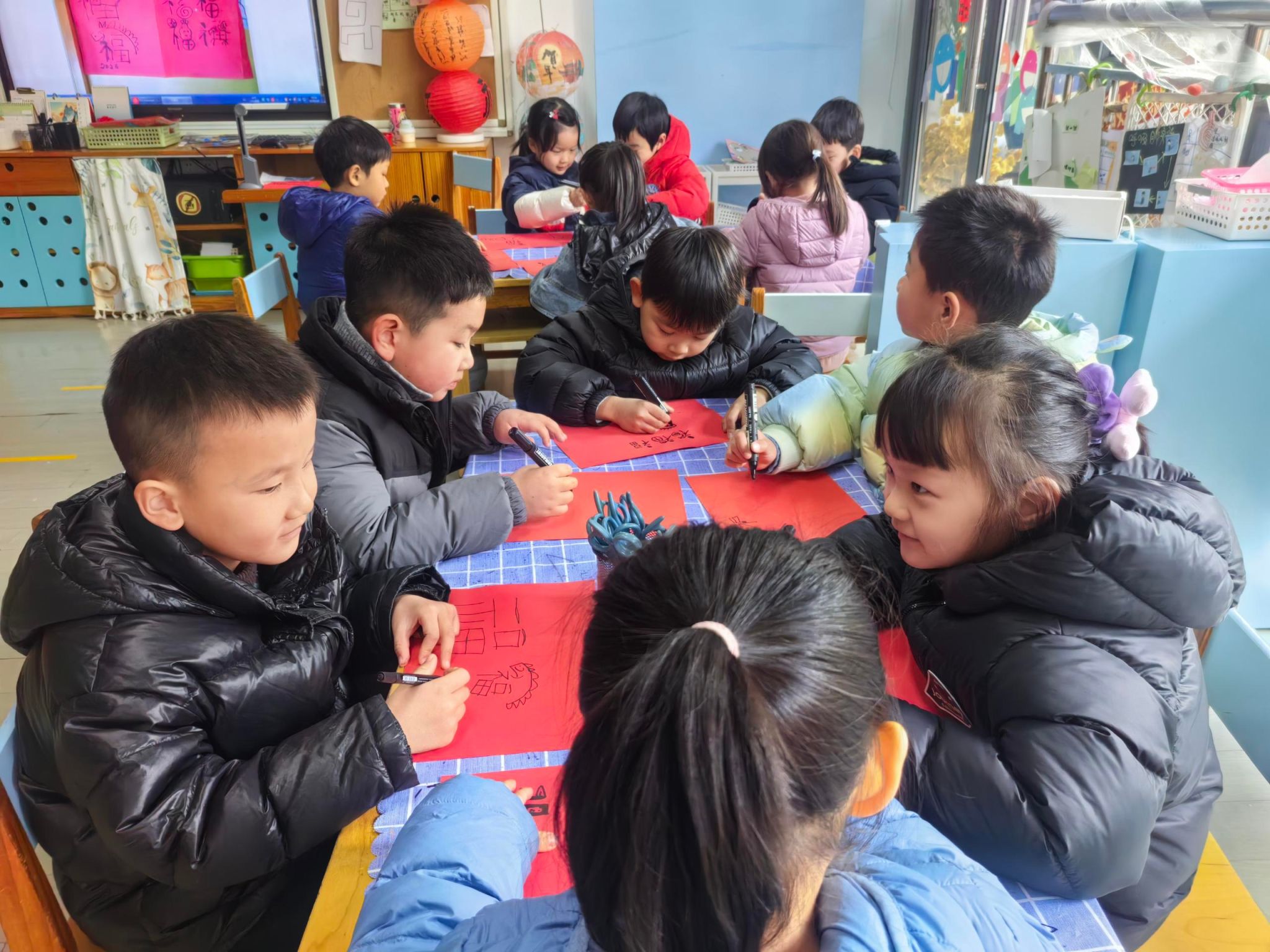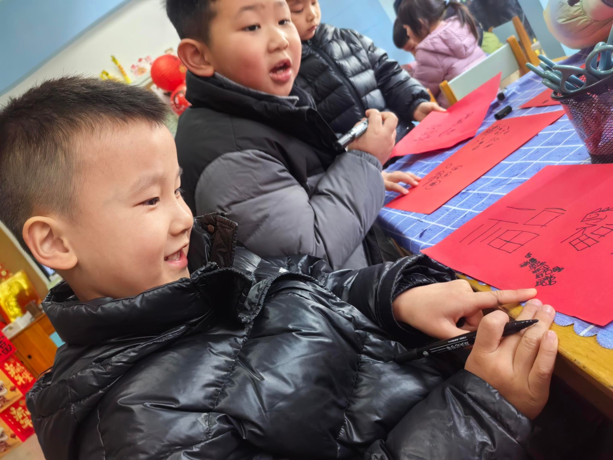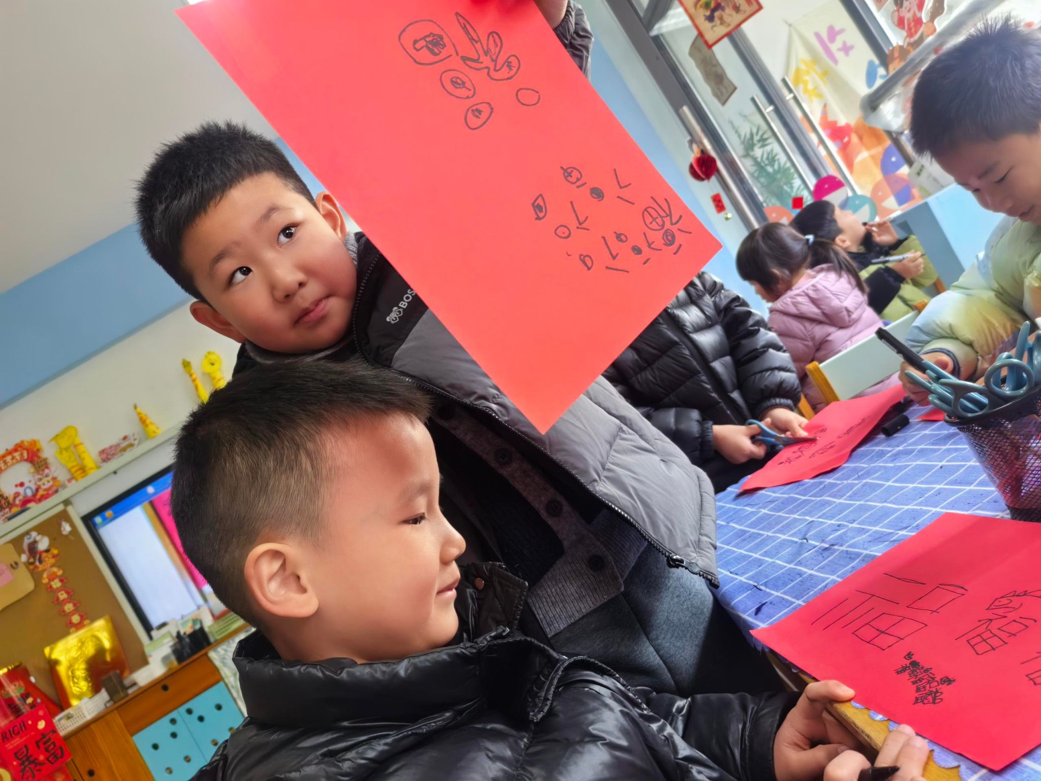 🧧大四班萌娃写福字啦!小手握笔,一笔一划都是满满的福气,把最暖的新年祝福送给大家~福气福气全都来✨