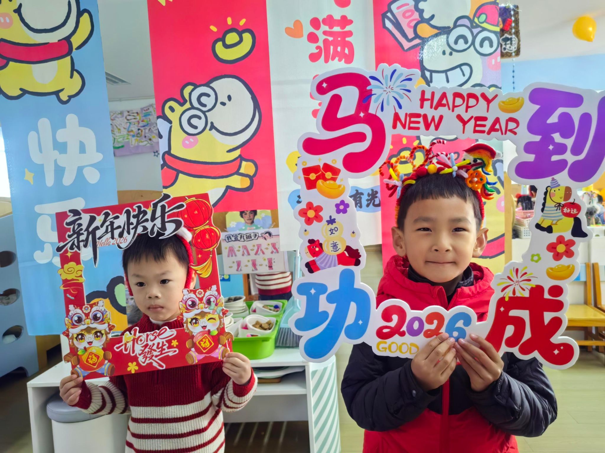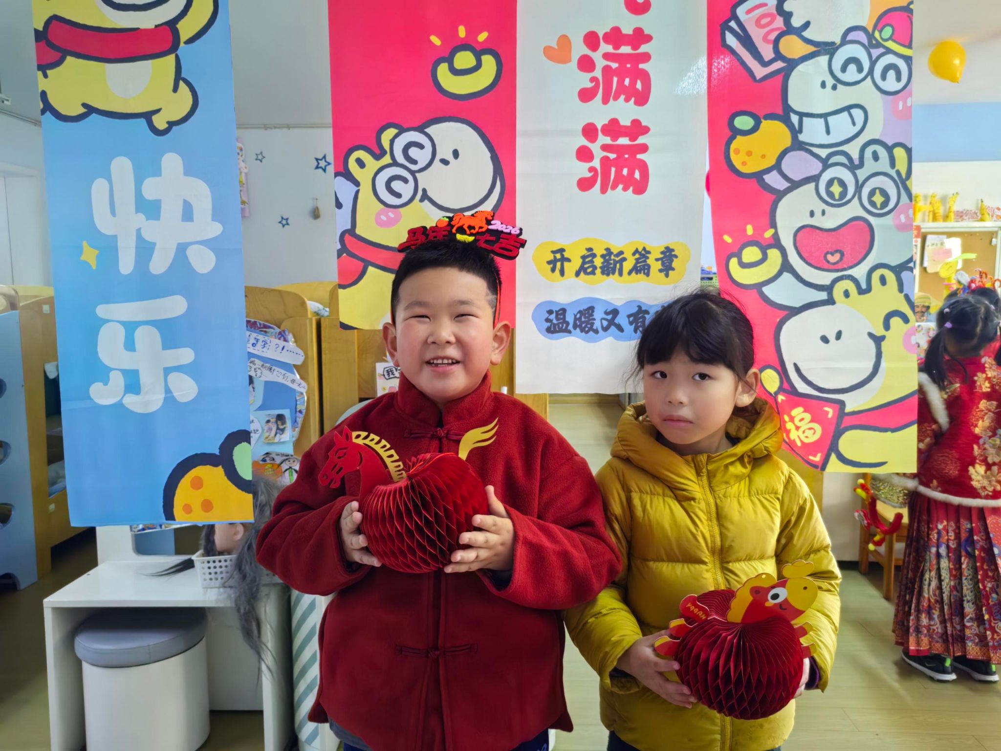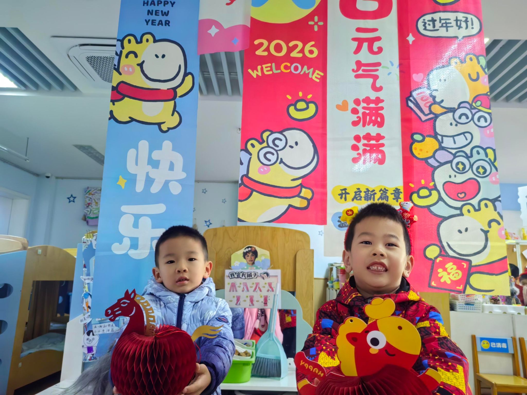 🎈大四班的宝贝们拉着好朋友的手,一起定格下新年的第一张合照。镜头里的笑脸比新年的糖果还要甜,这就是童年最棒的礼物呀!✨