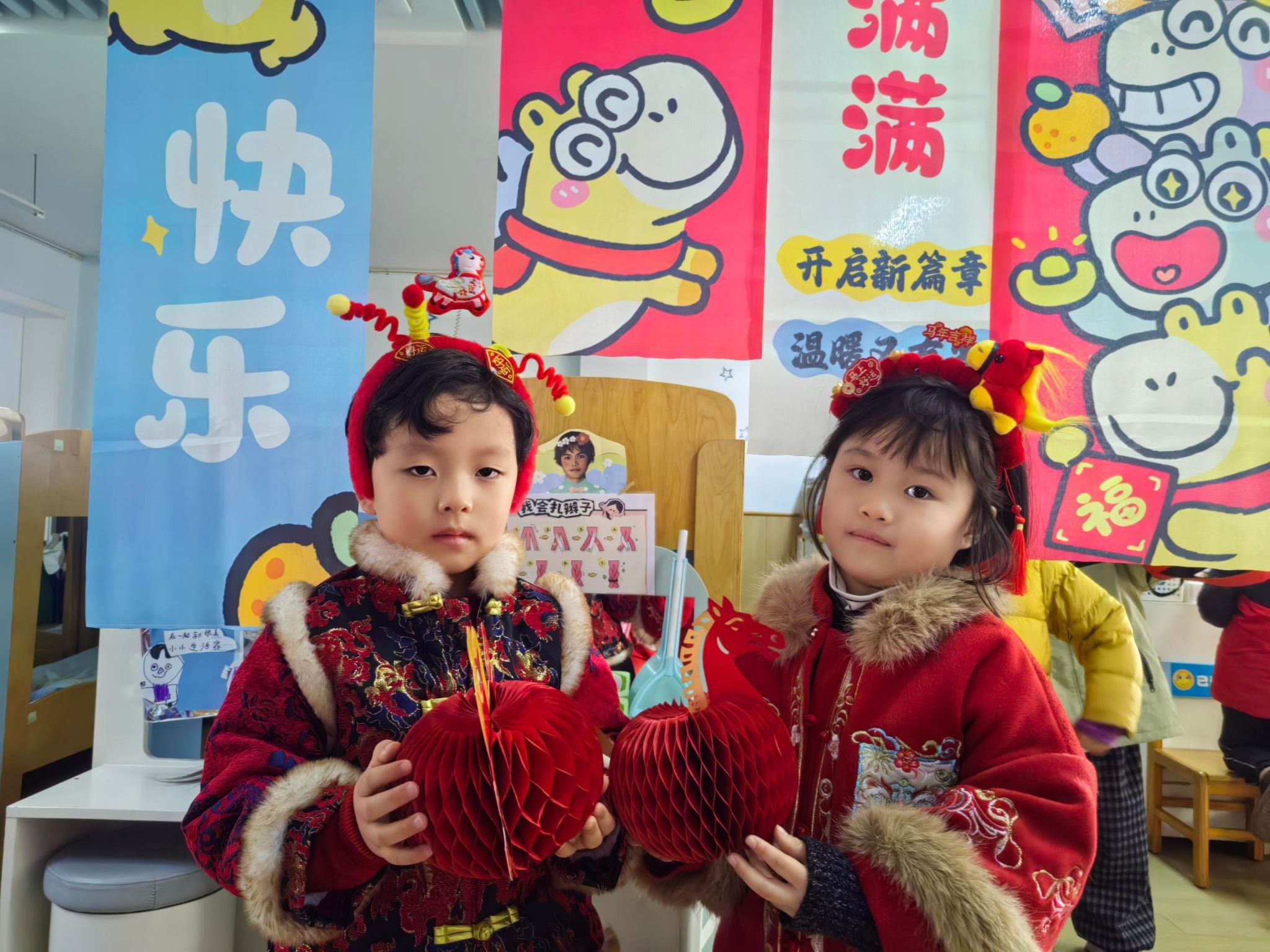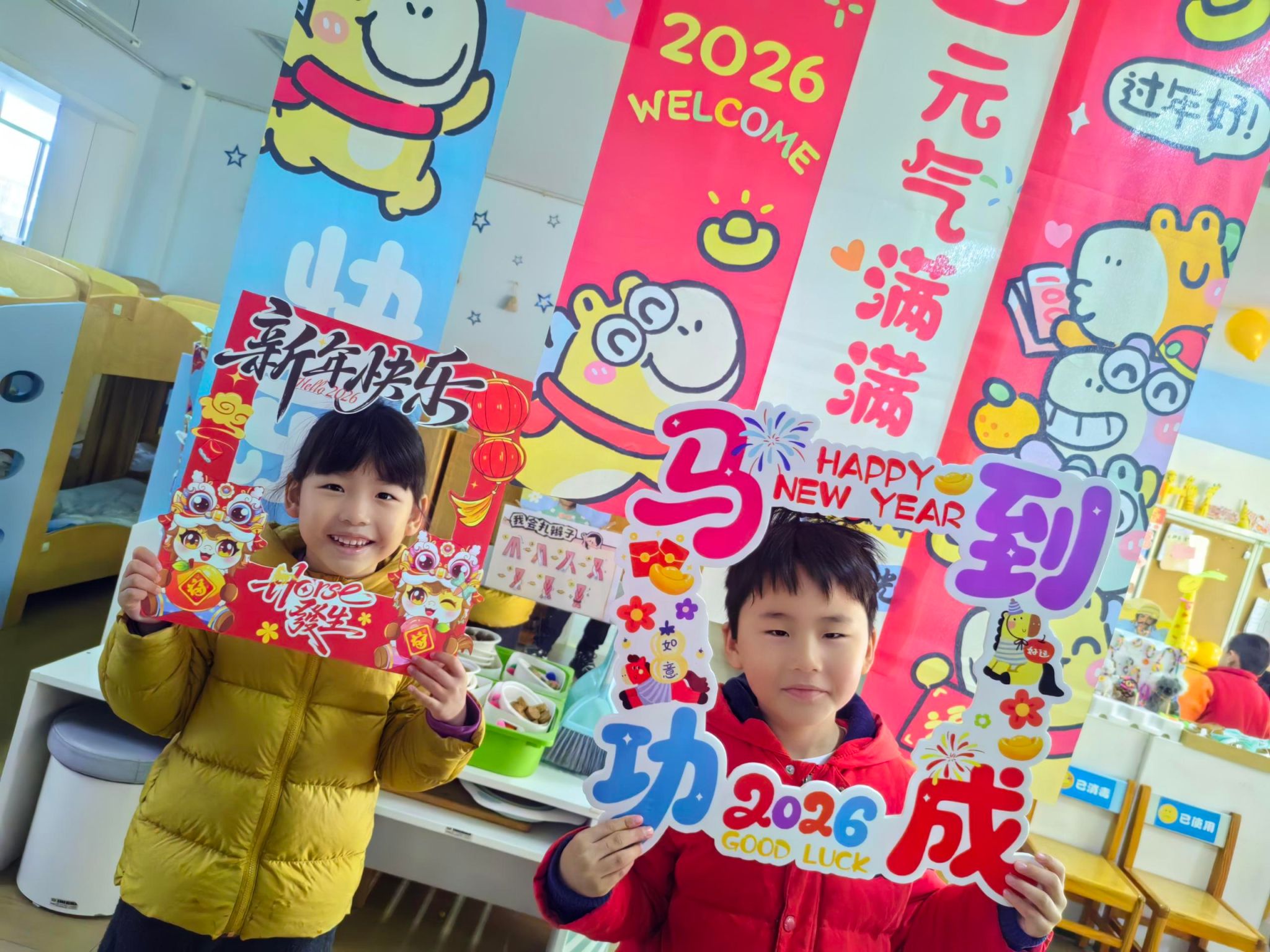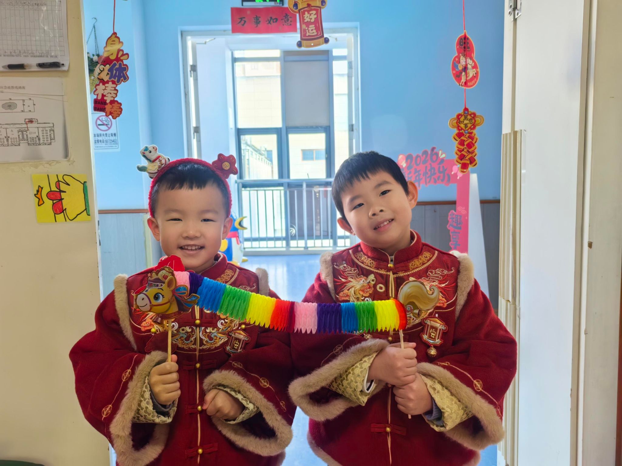 🎈大四班的宝贝们拉着好朋友的手,一起定格下新年的第一张合照。镜头里的笑脸比新年的糖果还要甜,这就是童年最棒的礼物呀!✨