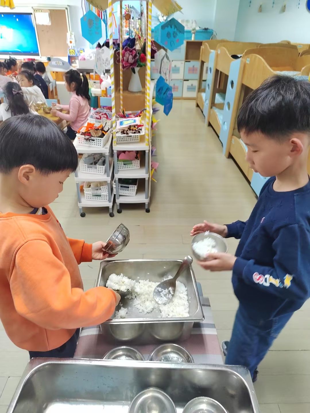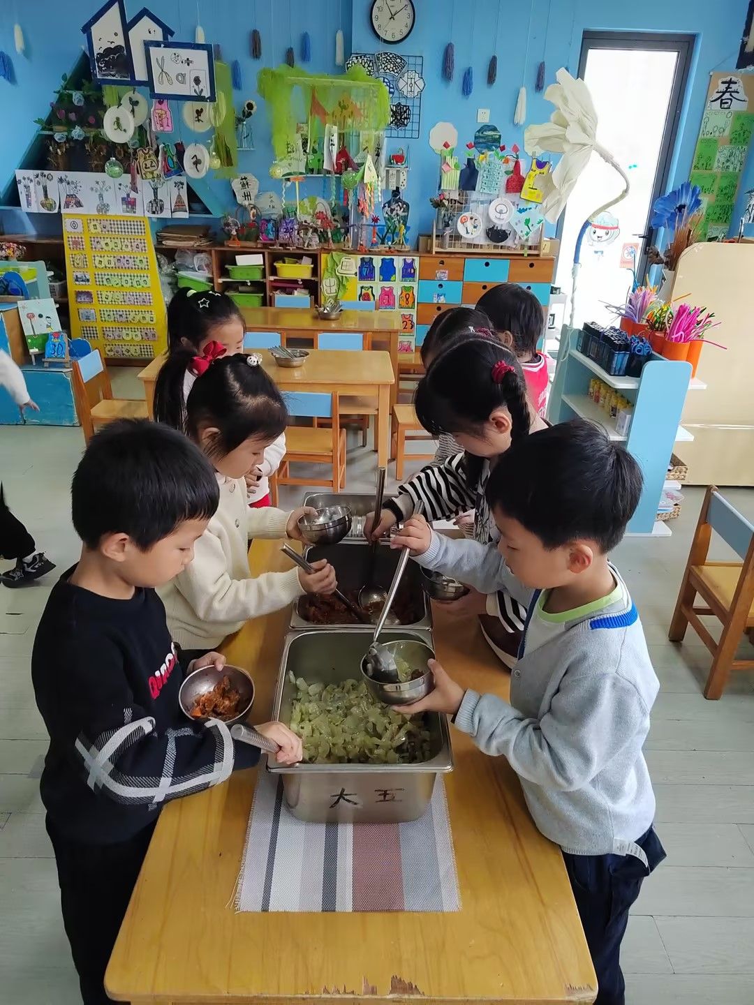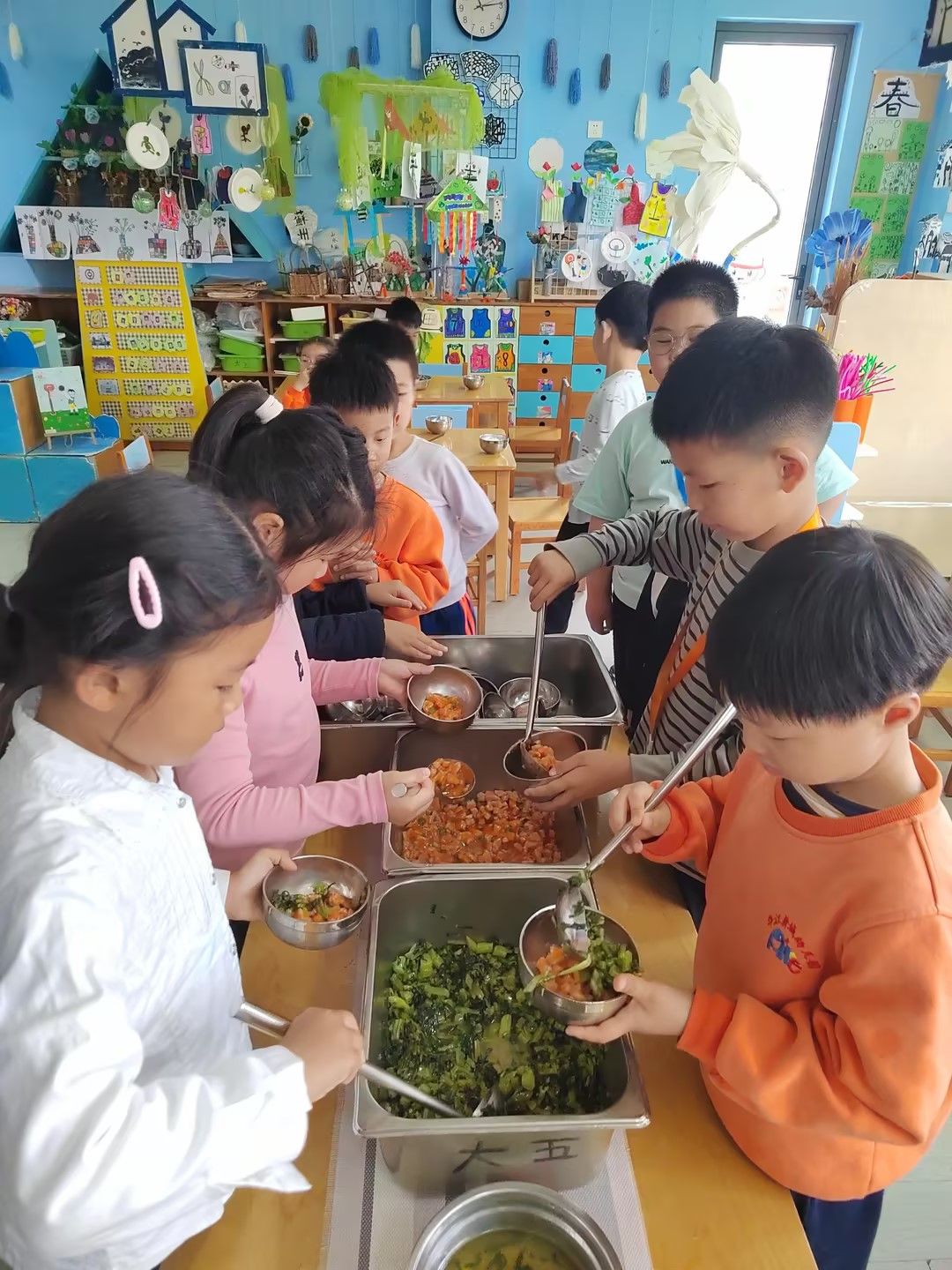从“自主取餐-分餐"形式的转变,从“均等菜量”到“按需取量”,孩子们从被动到主动,在自主分餐过程中逐渐感受到了谦让与协作,在光盘行动中,懂得了粮食的宝贵。细品美食,乐享自主,让文明用餐植根于孩子们幼小的心灵。